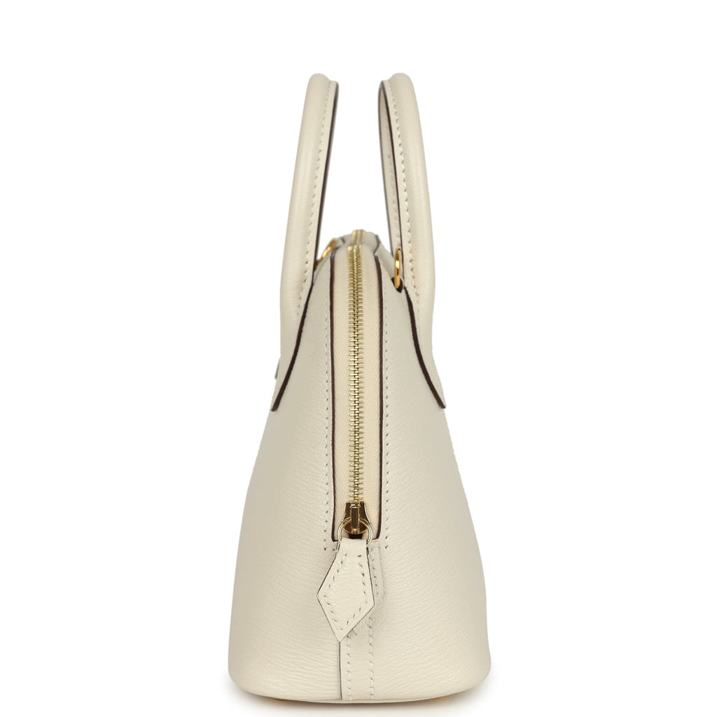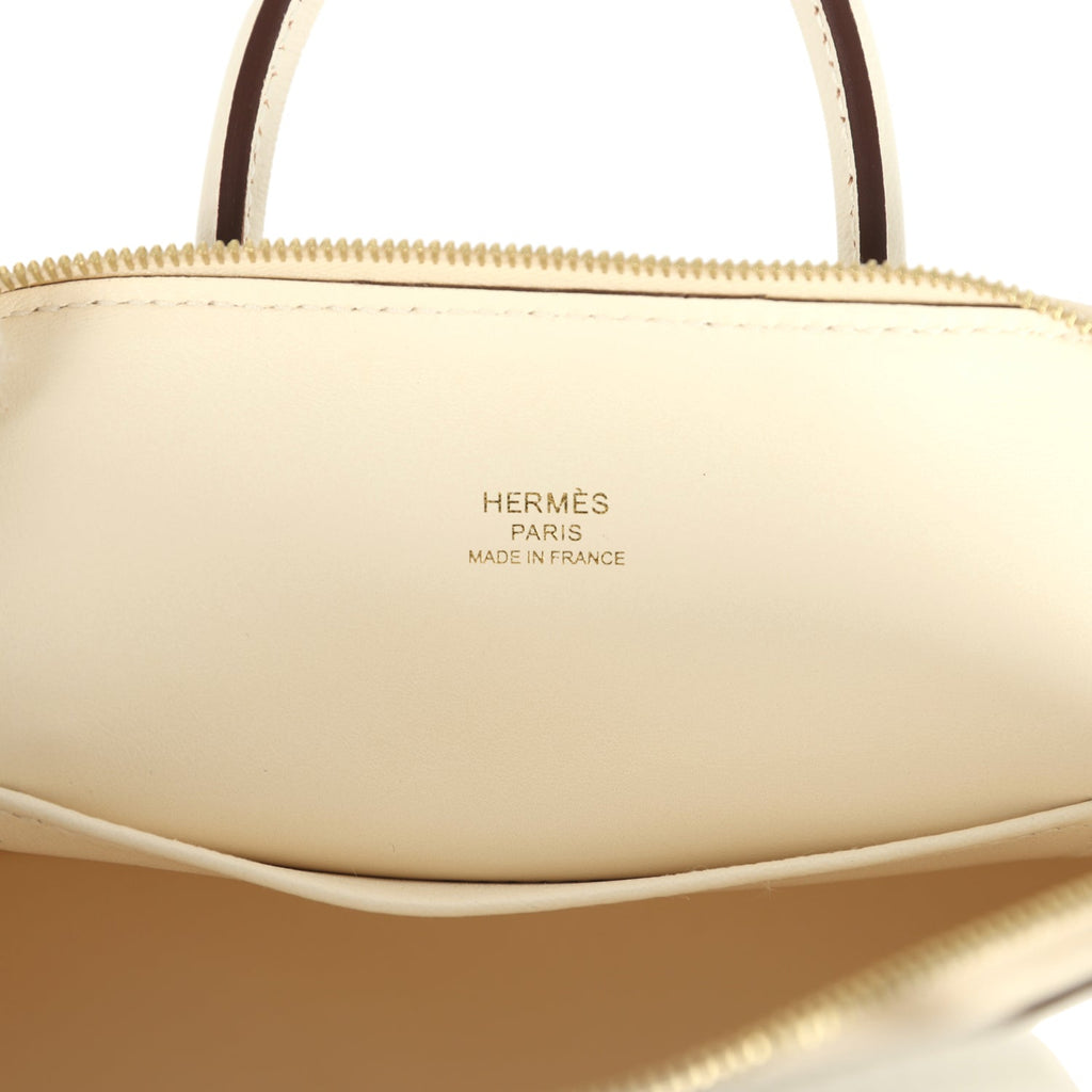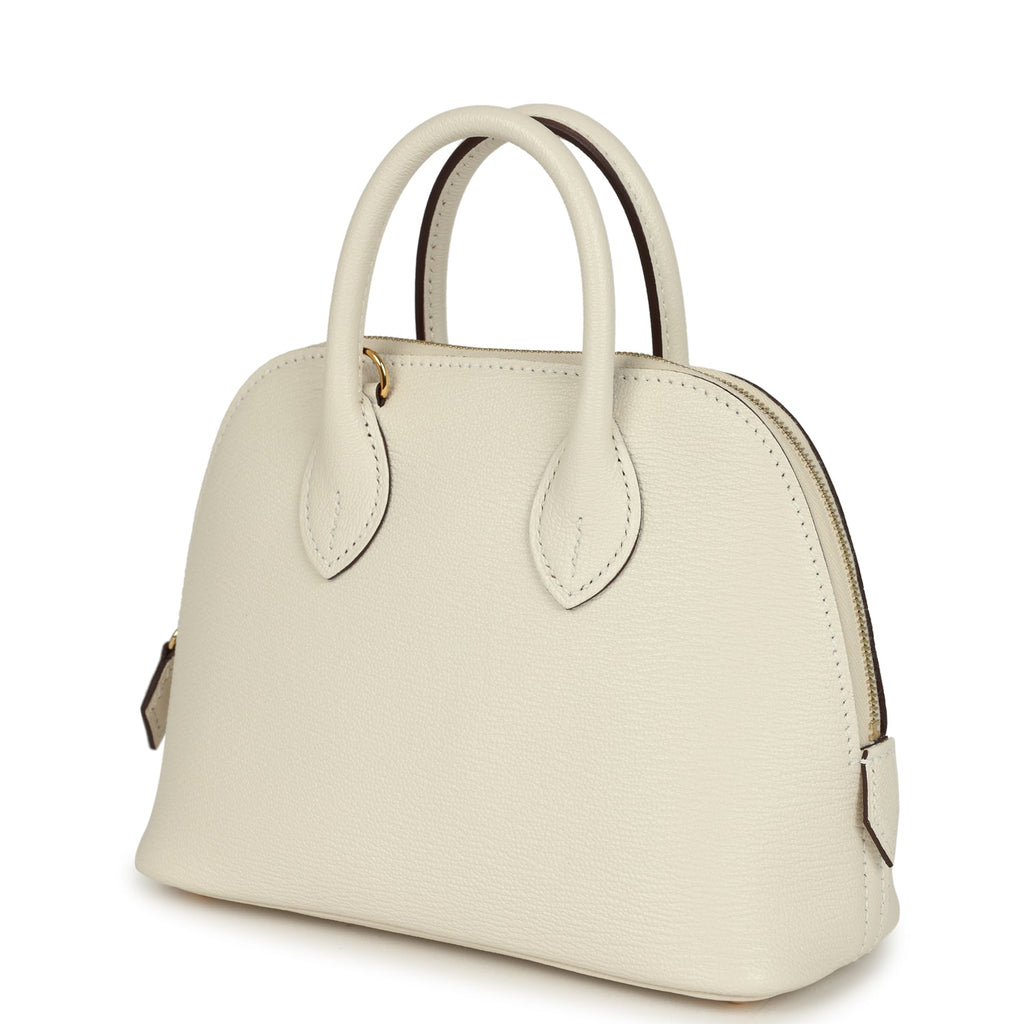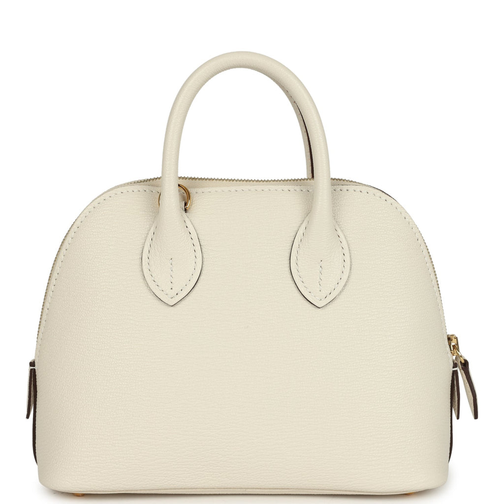 This Mini 1923 Bolide is in Nata Chevre Mysore leather with gold hardware, has tonal stitching, a top zipper closure, double rolled handles and a removable shoulder strap.