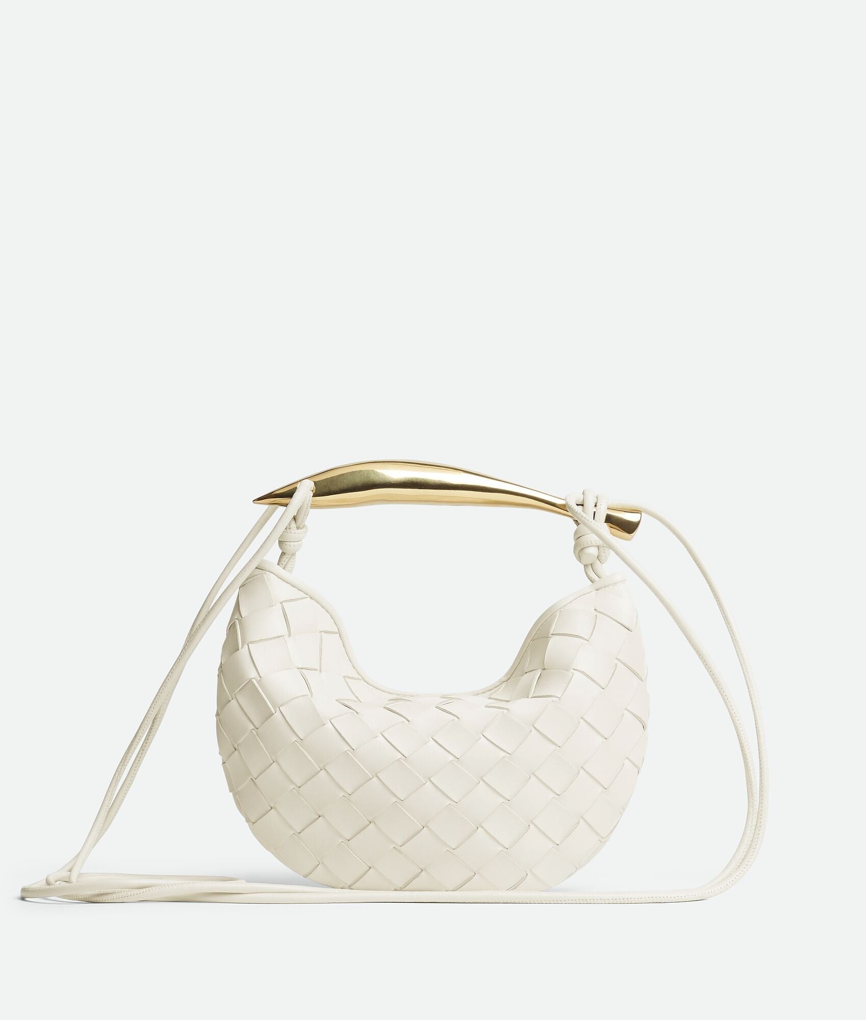 Cross-body bag in Intrecciato leather with sculptural metallic top handle.