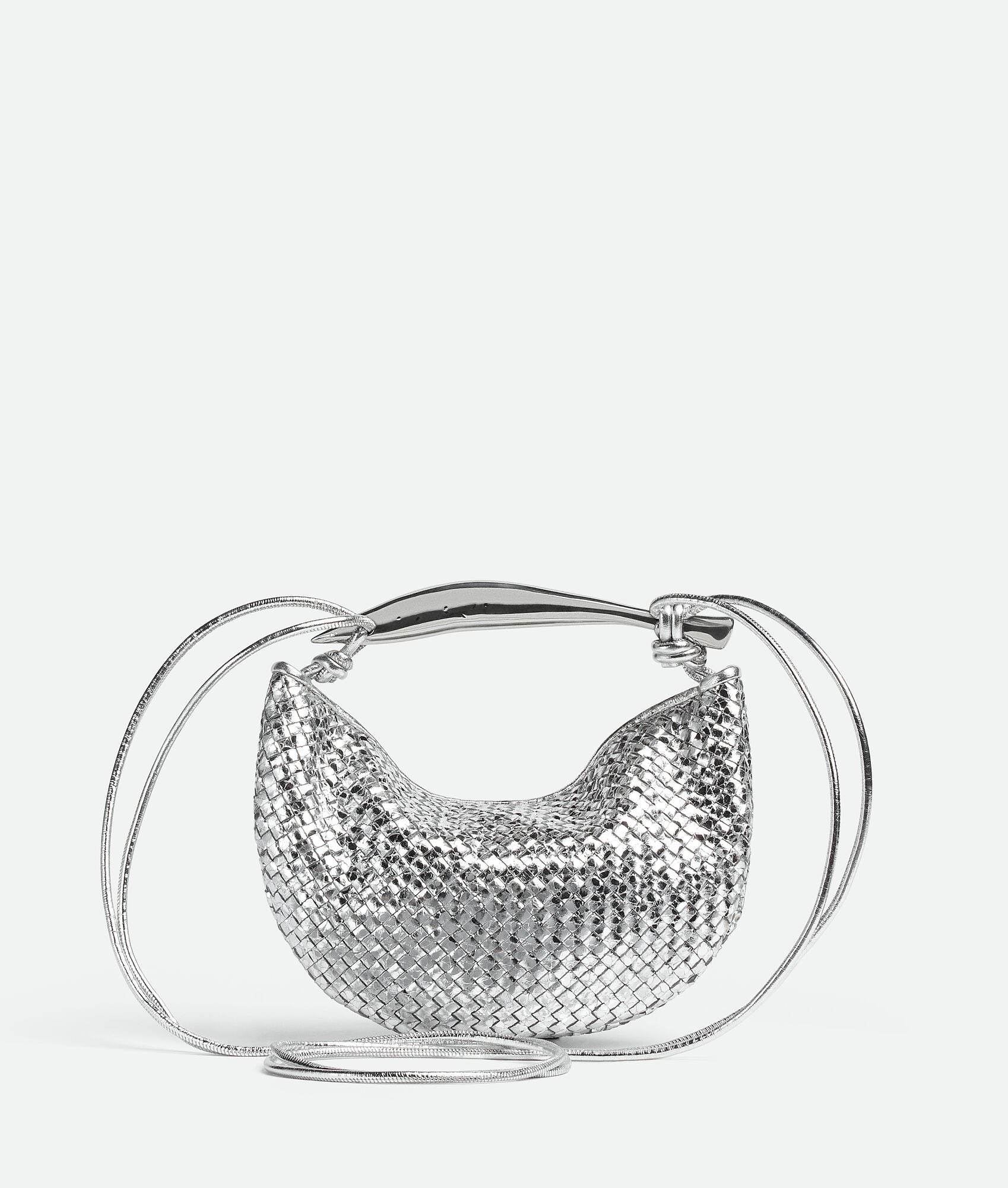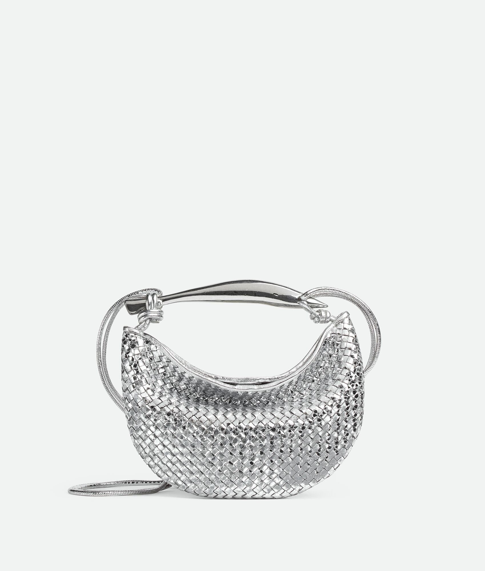 Cross-body bag in Intrecciato leather with sculptural metallic top handle.