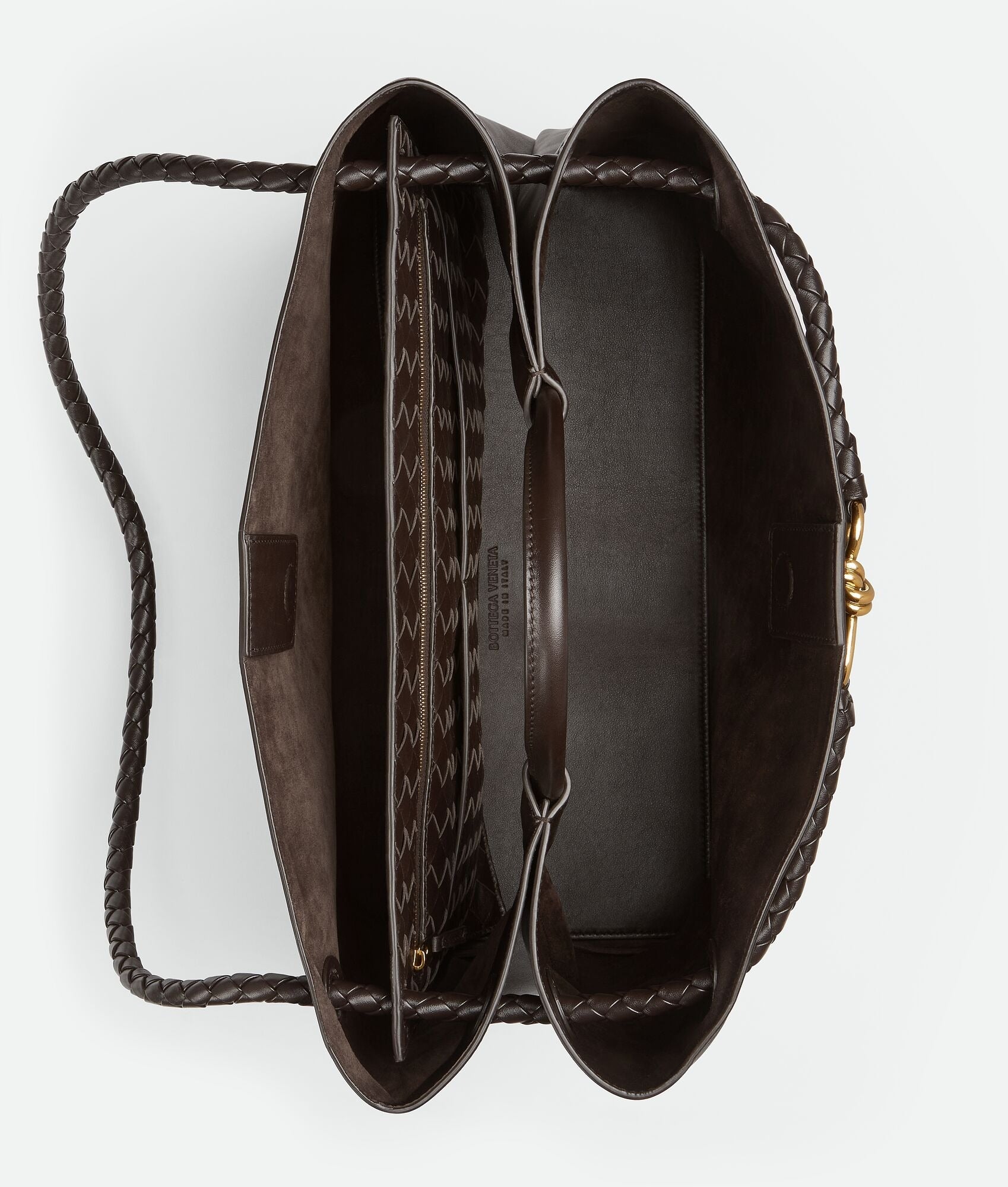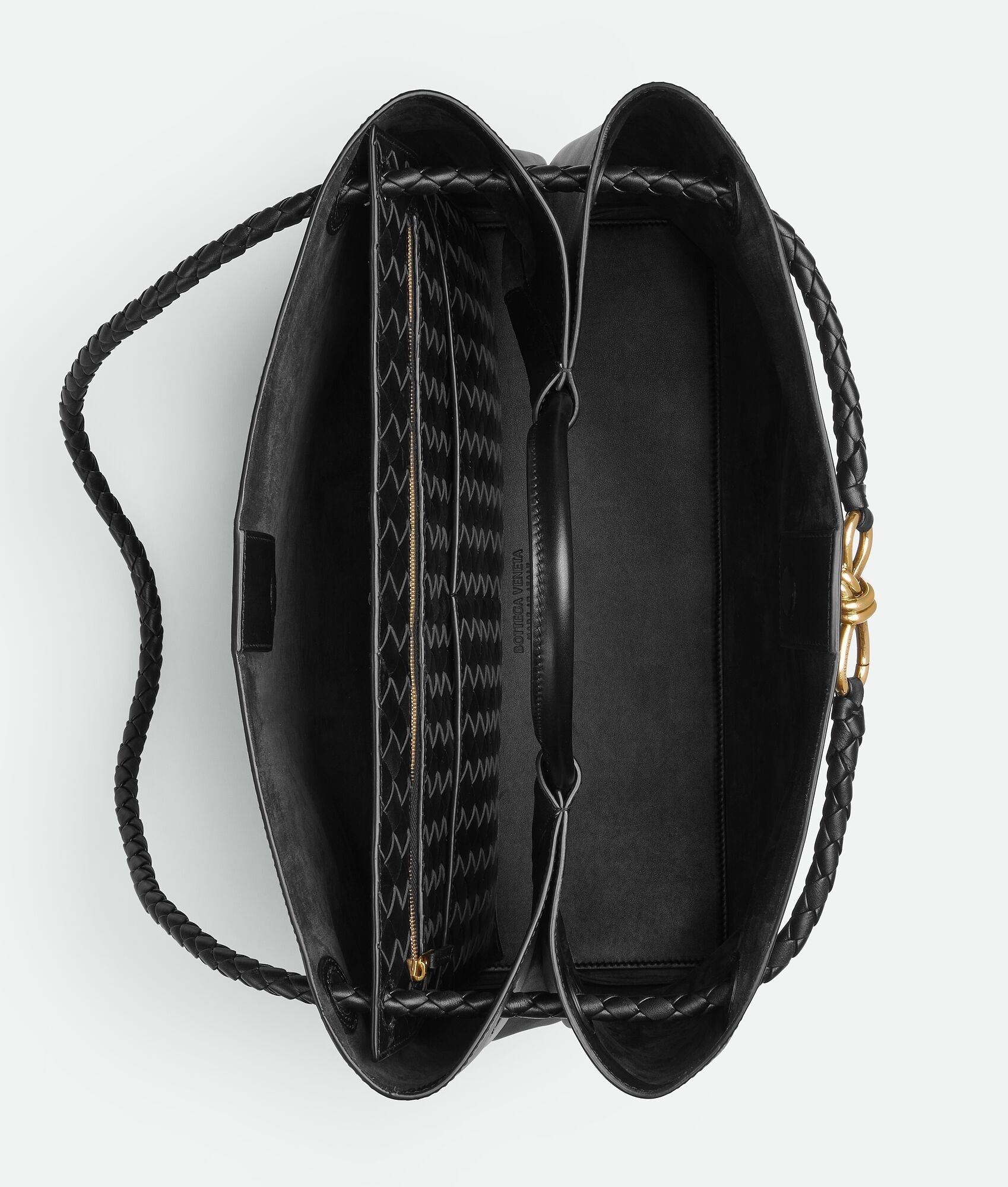 Top handle bag in silky calf leather with signature knot detail and sliding cross-body strap.