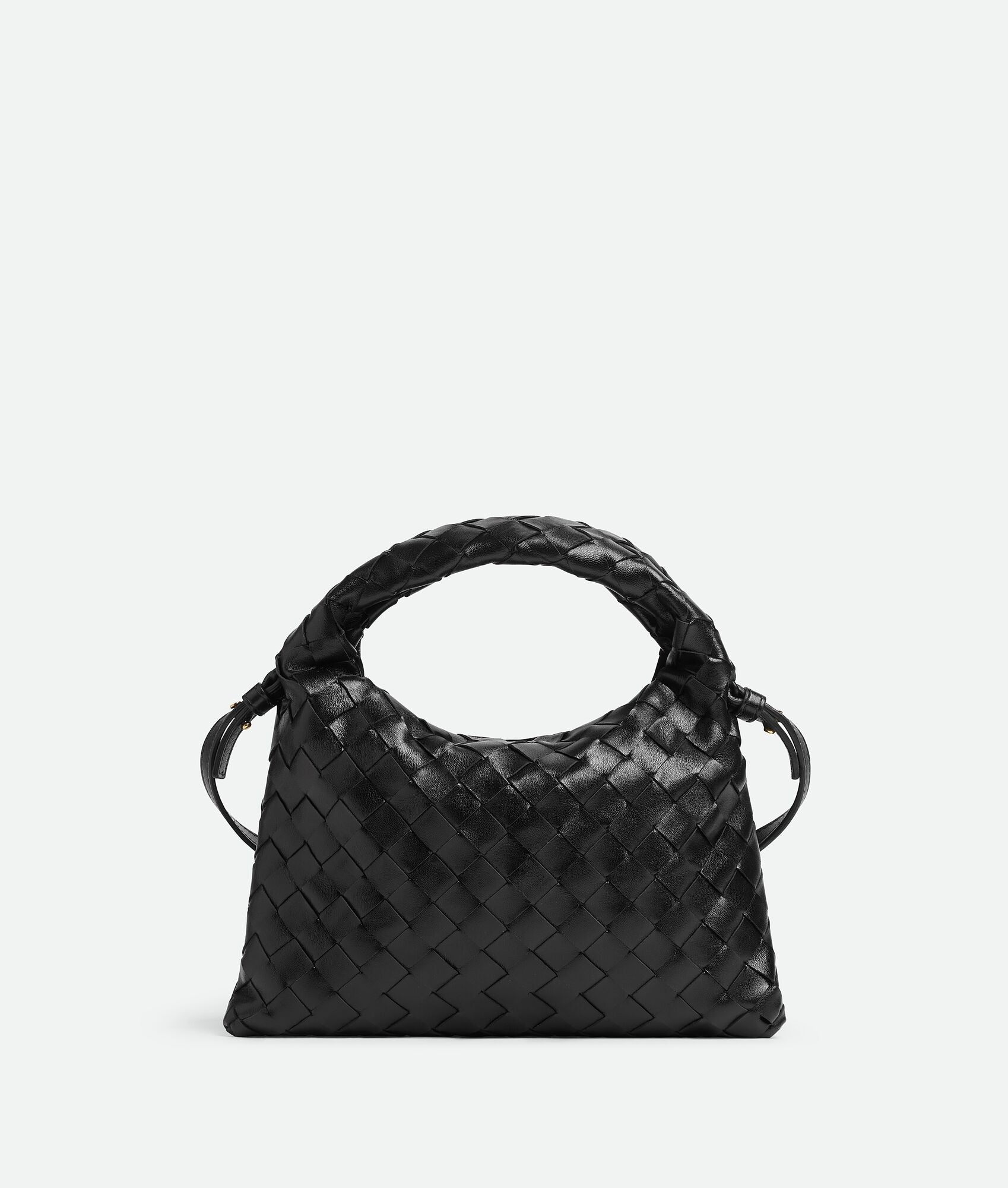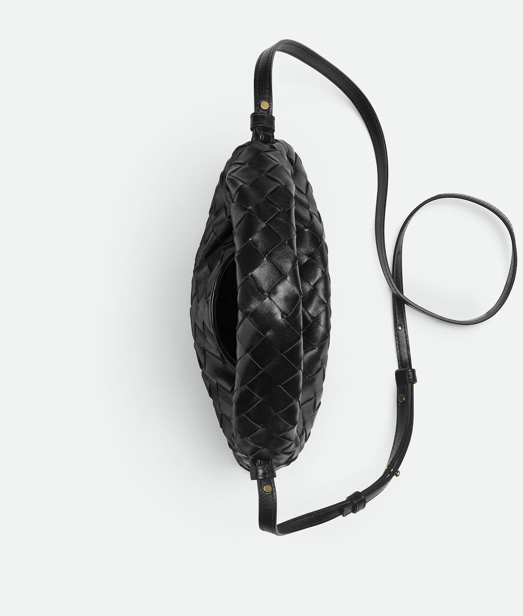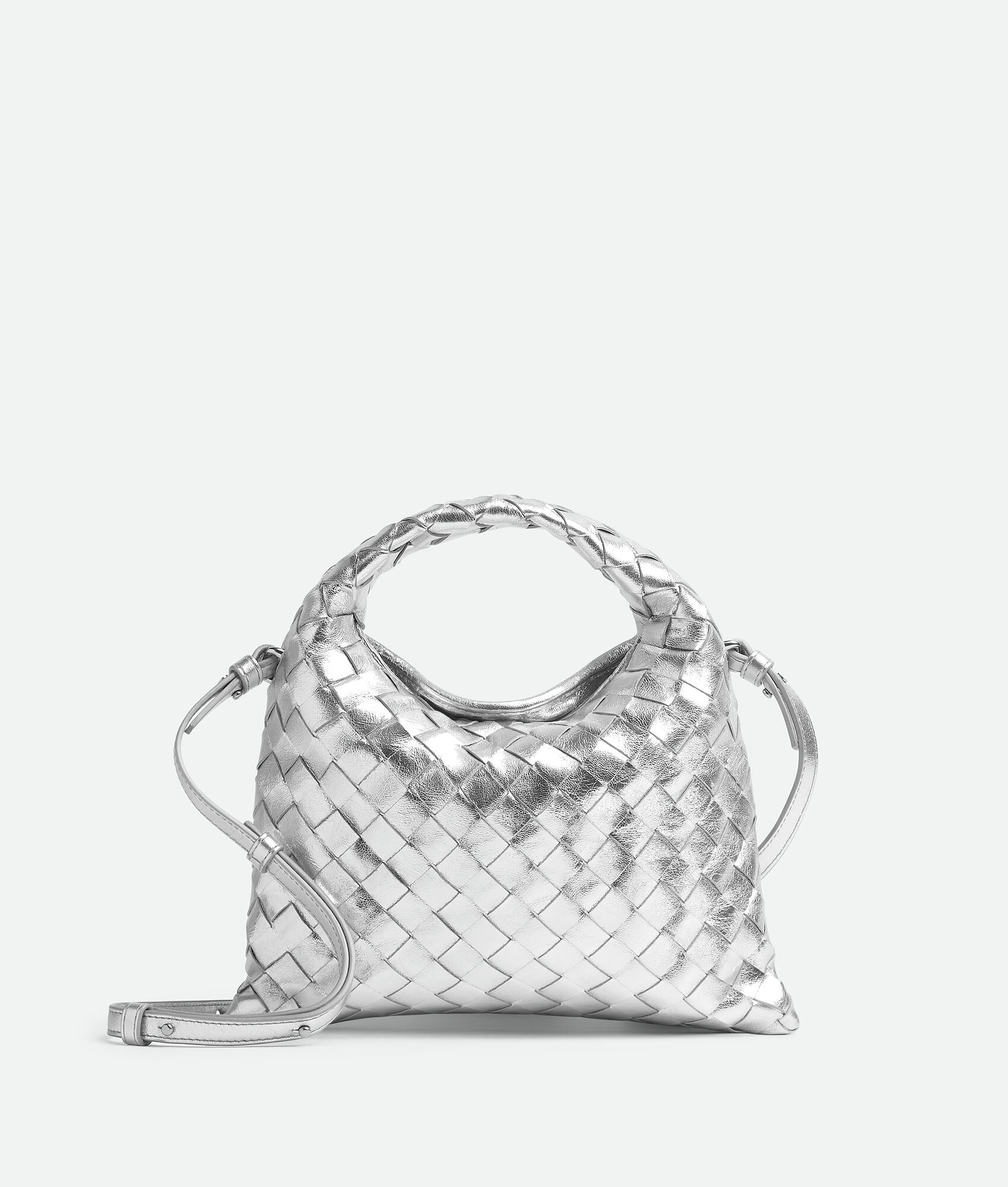 Cross-body bag with Intrecciato craftsmanship in lambskin with foggy mirror effect and detachable strap.