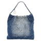 This is an authentic CHANEL Denim Quilted Chanel 22 in Blue. This shoulder bag features a blue denim diamond-stitched fabric with a Chanel logo in silver metal on the front, and a silver and denim chain strap that cinches the top. The bag opens to a blue denim fabric interior with a zipper pocket and removable pouch.