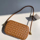 This compact shoulder bag features an elegant woven leather body and a slim braided strap for a refined yet effortless style. With its soft rectangular shape and minimalist finish, it?€?s perfect for both day and evening wear. Lightweight, practical, and endlessly versatile.