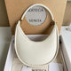 Refined and minimalist, this curved leather hobo bag is crafted for effortless elegance. Its structured crescent shape and gold-tone hardware elevate its clean design, while the braided top handle adds a soft touch of craftsmanship. Perfect for day or evening wear, it?€?s a timeless essential with a contemporary twist.