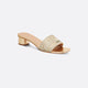 Part of the Dior Or capsule collection, the Dway heeled slide reframes a hallmark creation in a modern variation. The design is offered in elegant gold-tone cotton embroidered with metallic thread and strass. The embroidered upper, with its Christian Dior Paris signature, makes it an immediate statement piece, while the square toe accents its contemporary silhouette. Featuring a 3.5-cm (1.5-inch) cylindrical heel, the slide will lend a modern touch to any attire and can be paired with other Dior Or creations.