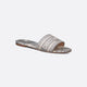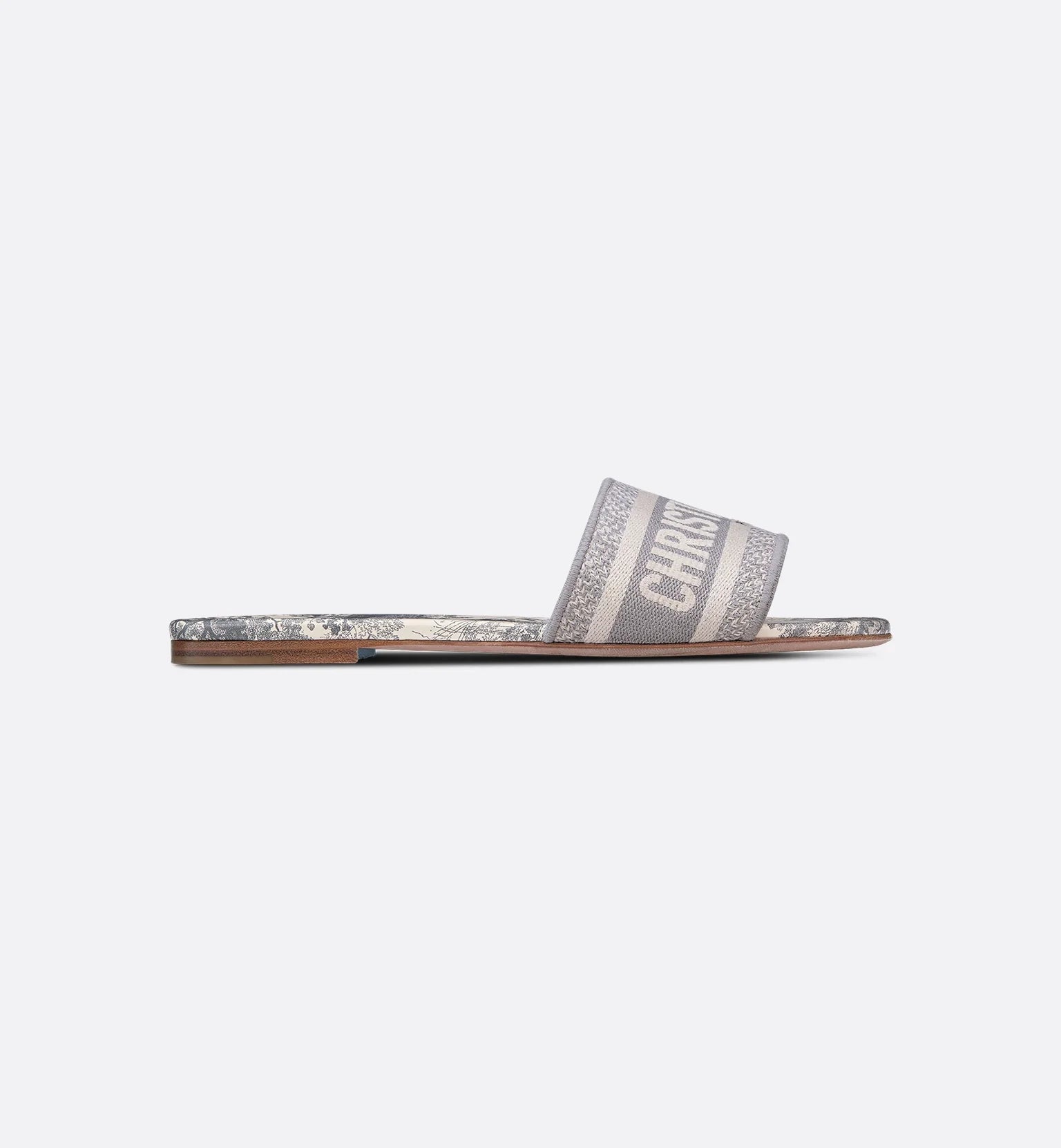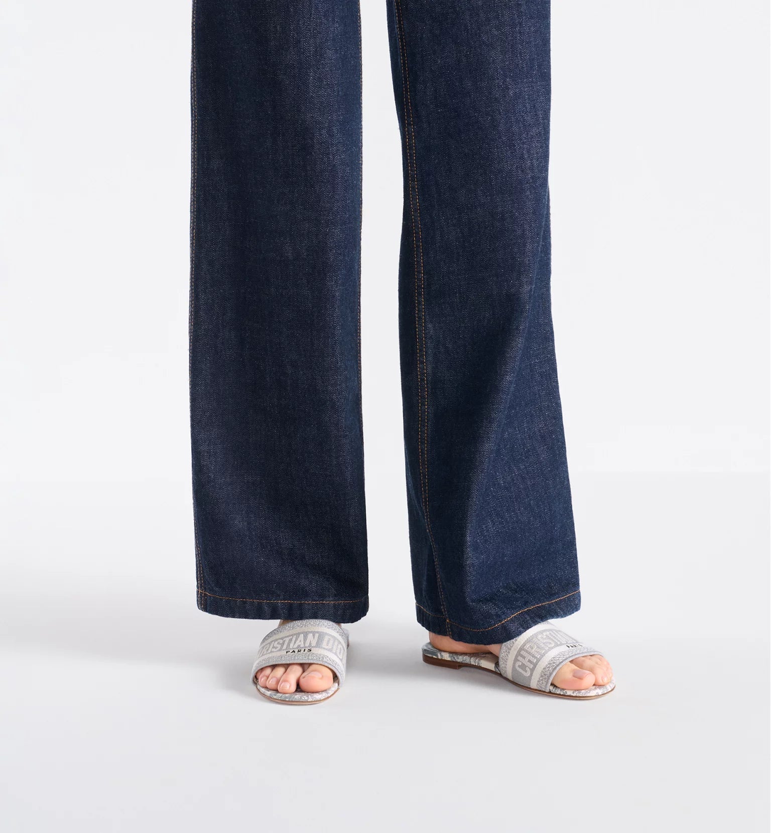 The Dway slide has a timeless and emblematic silhouette. The slide's natural raffia and deep blue cotton upper features an embroidered Christian Dior Paris signature for an unmistakable touch. The streamlined design slips on easily and offers effortless style.