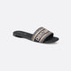 The Dway slide has a timeless and emblematic silhouette. The slide's natural raffia and deep blue cotton upper features an embroidered Christian Dior Paris signature for an unmistakable touch. The streamlined design slips on easily and offers effortless style.