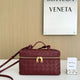 Crafted from premium woven leather, this structured box bag brings timeless elegance with a modern edge. Featuring a sleek top handle, smooth zipper closure with gold-tone hardware, and a long adjustable strap, it effortlessly transitions from day to evening wear. The compact yet spacious interior makes it perfect for essentials while maintaining a chic silhouette.