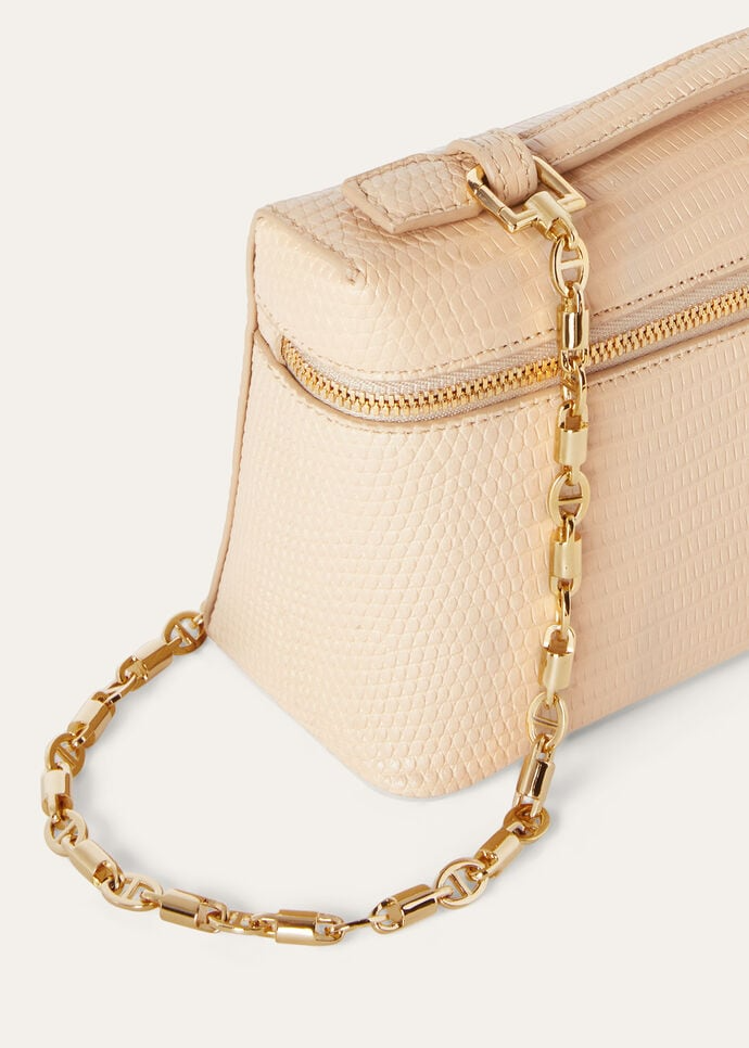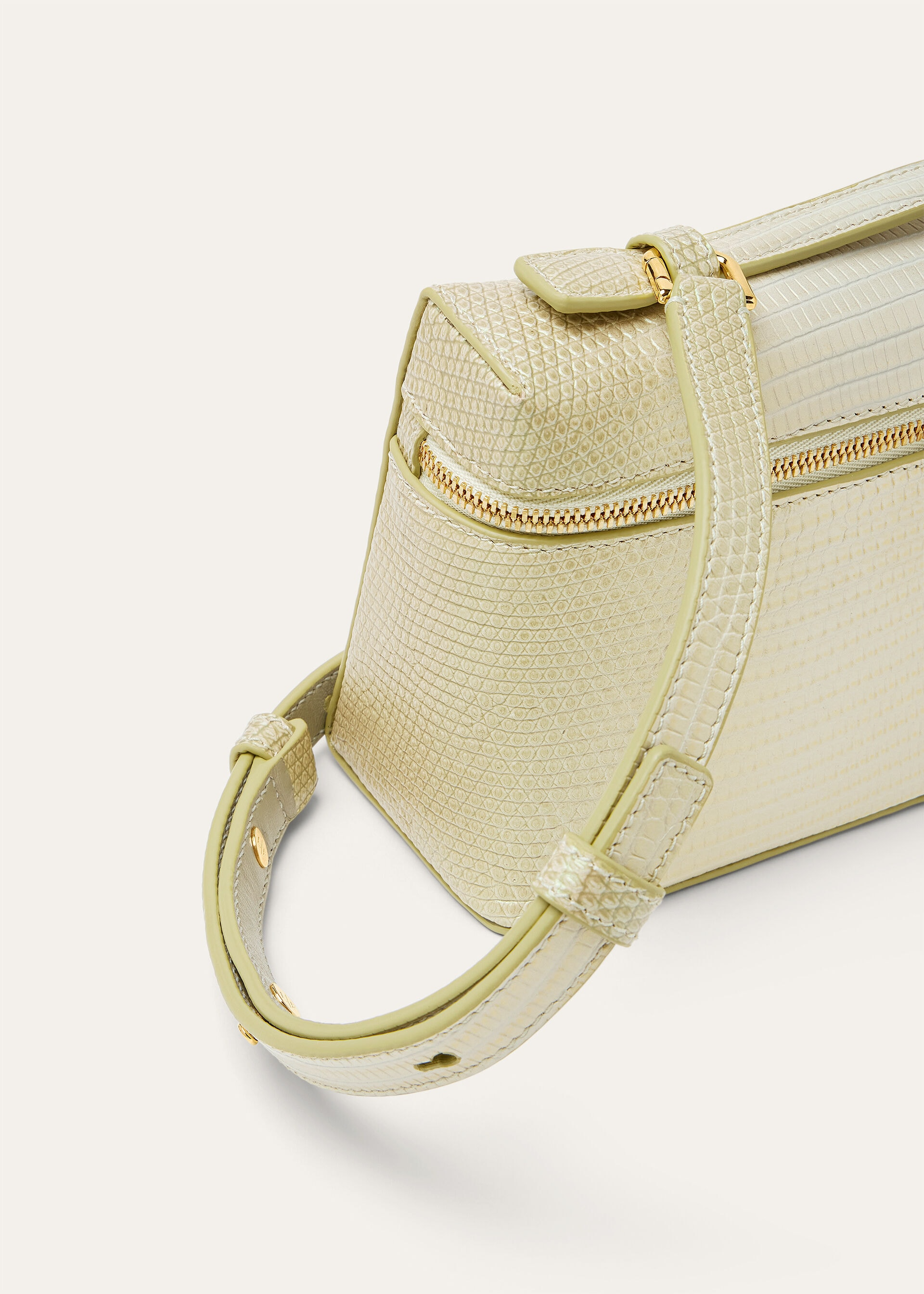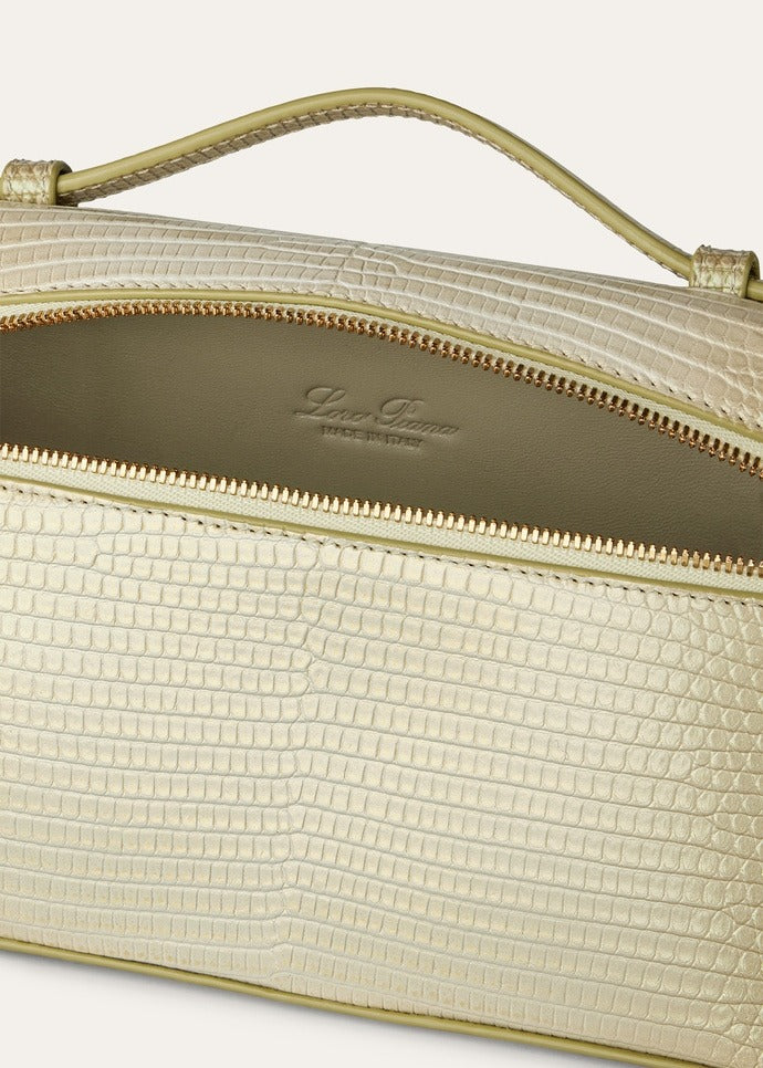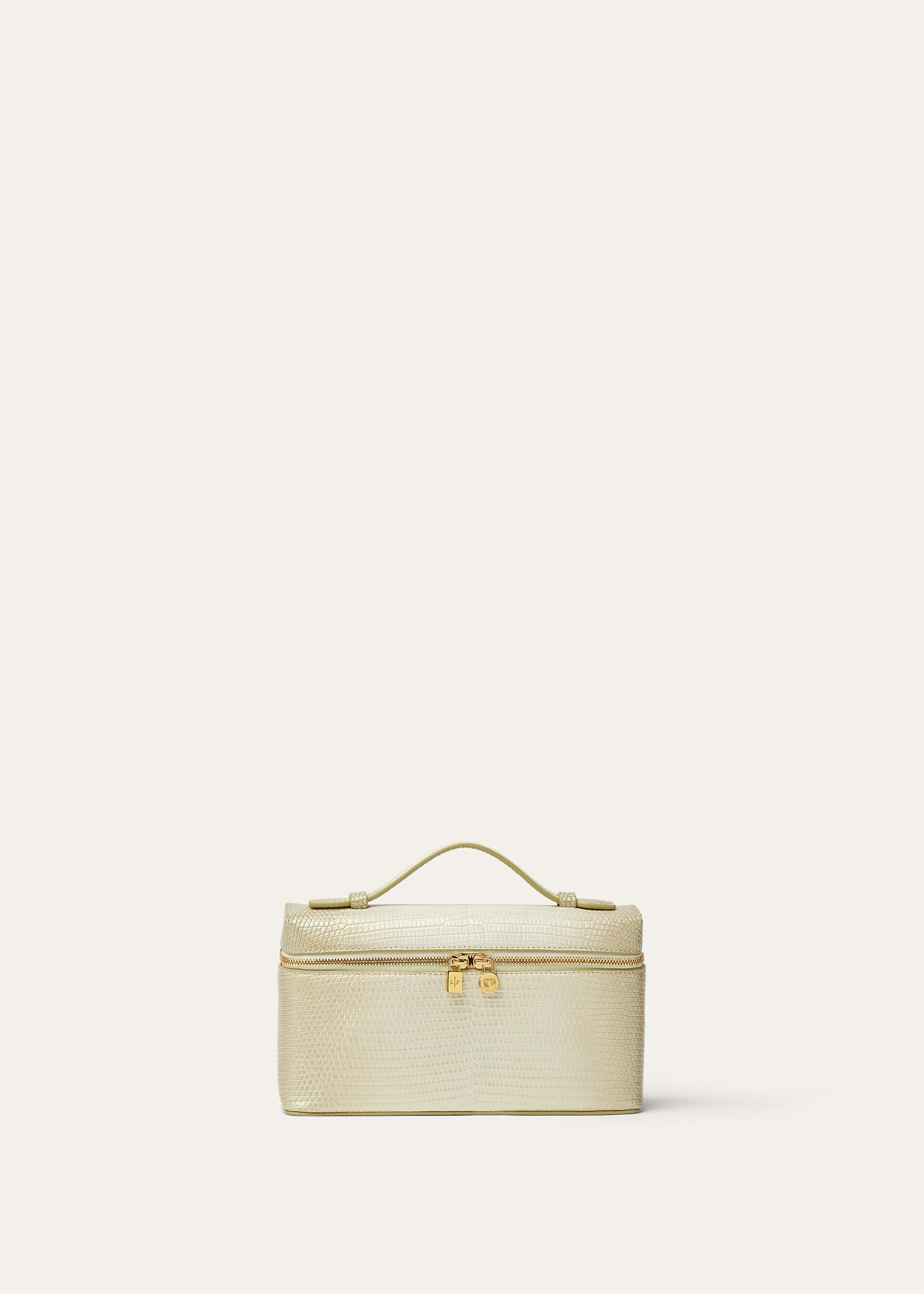 Versatile and endlessly refined, the Extra Pocket L19 is a quintessential Loro Piana pouch with timeless charm. It is crafted from exclusive lizard skin with a slightly pearlescent finish. The petite accessory can be carried crossbody or in hand, with the chain strap removed.