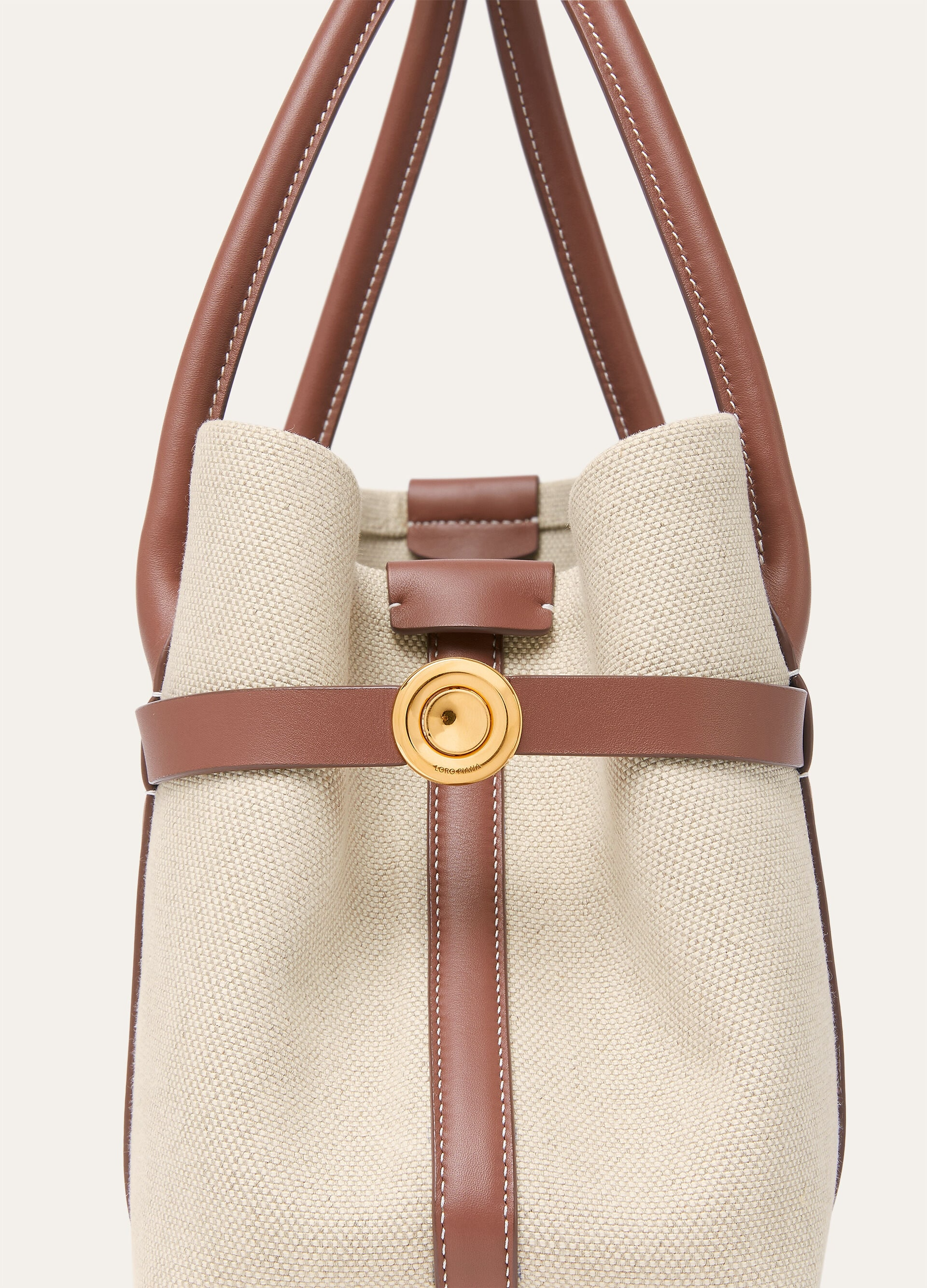 An extension of the iconic Ghiera family, the Ghiera Shopper offers the perfect blend of elegance and functionality for everyday use. Crafted from cotton and linen, its generous volume makes it ideal for both work and play, offering versatility in use. The Ghiera ring closure creates a chic 'belt' effect, allowing the bag to be worn open for a more relaxed style or closed for a more sophisticated look. It can be worn over the shoulder or in the hand for effortless sophistication.