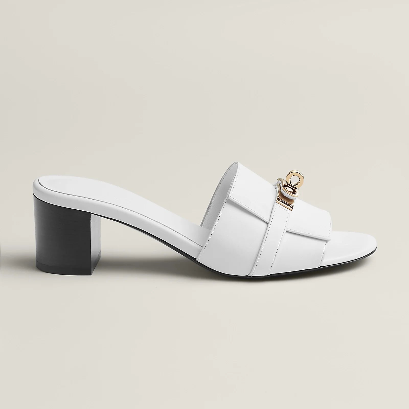 High heel sandal in calfskin with iconic Kelly buckle.