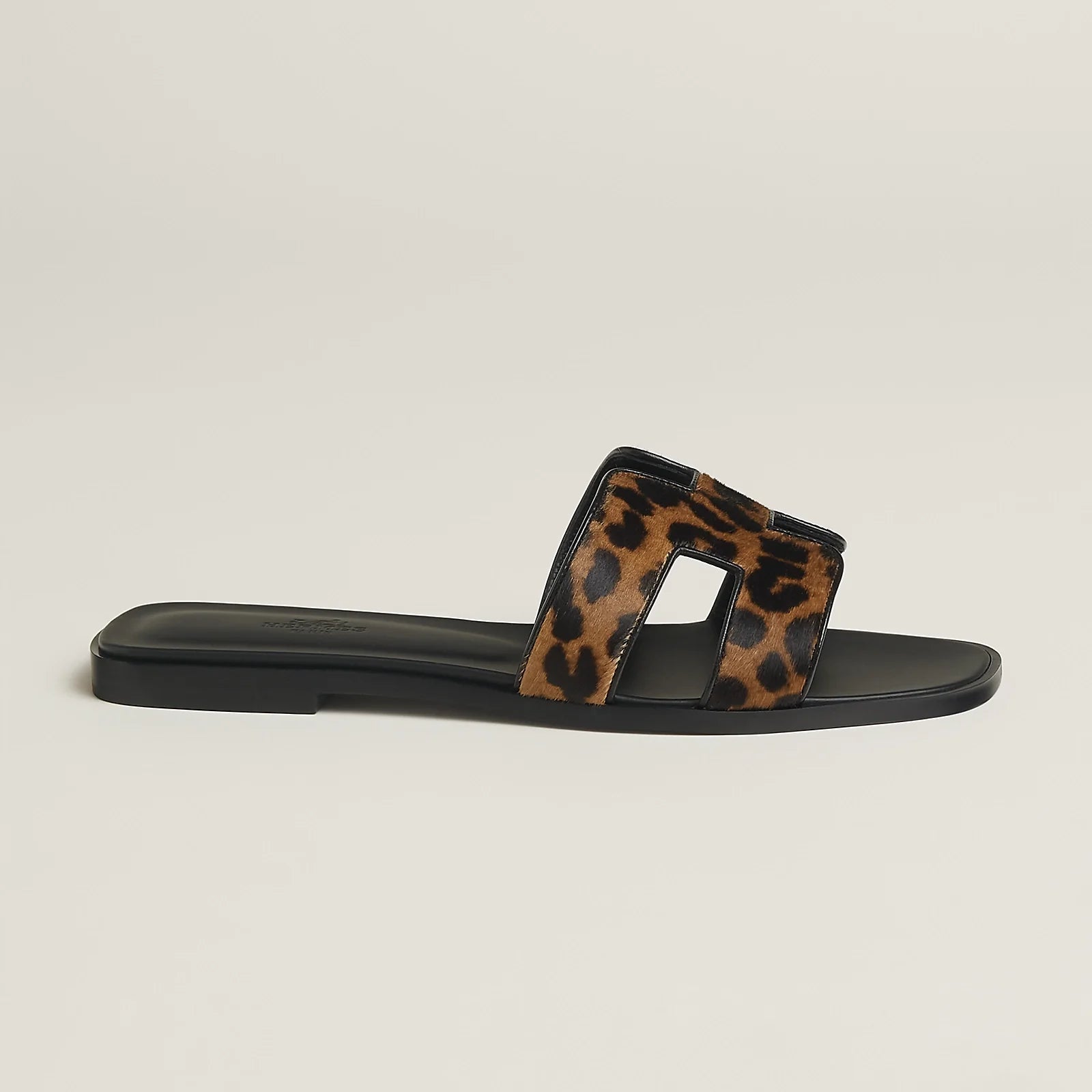 Sandal in moire calfskin with iconic "H" cut-out.