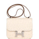 This Constance is of Nata ostrich with palladium hardware and features tonal stitching, a "H" snap lock closure, and an adjustable shoulder strap.