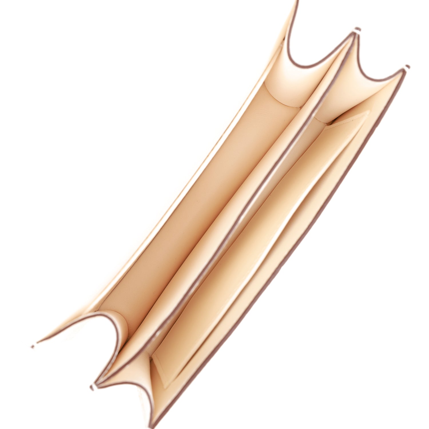 The interior is lined with Nata lambskin and has an open pocket on the front wall, a center divide, and a slit pocket on the back wall.