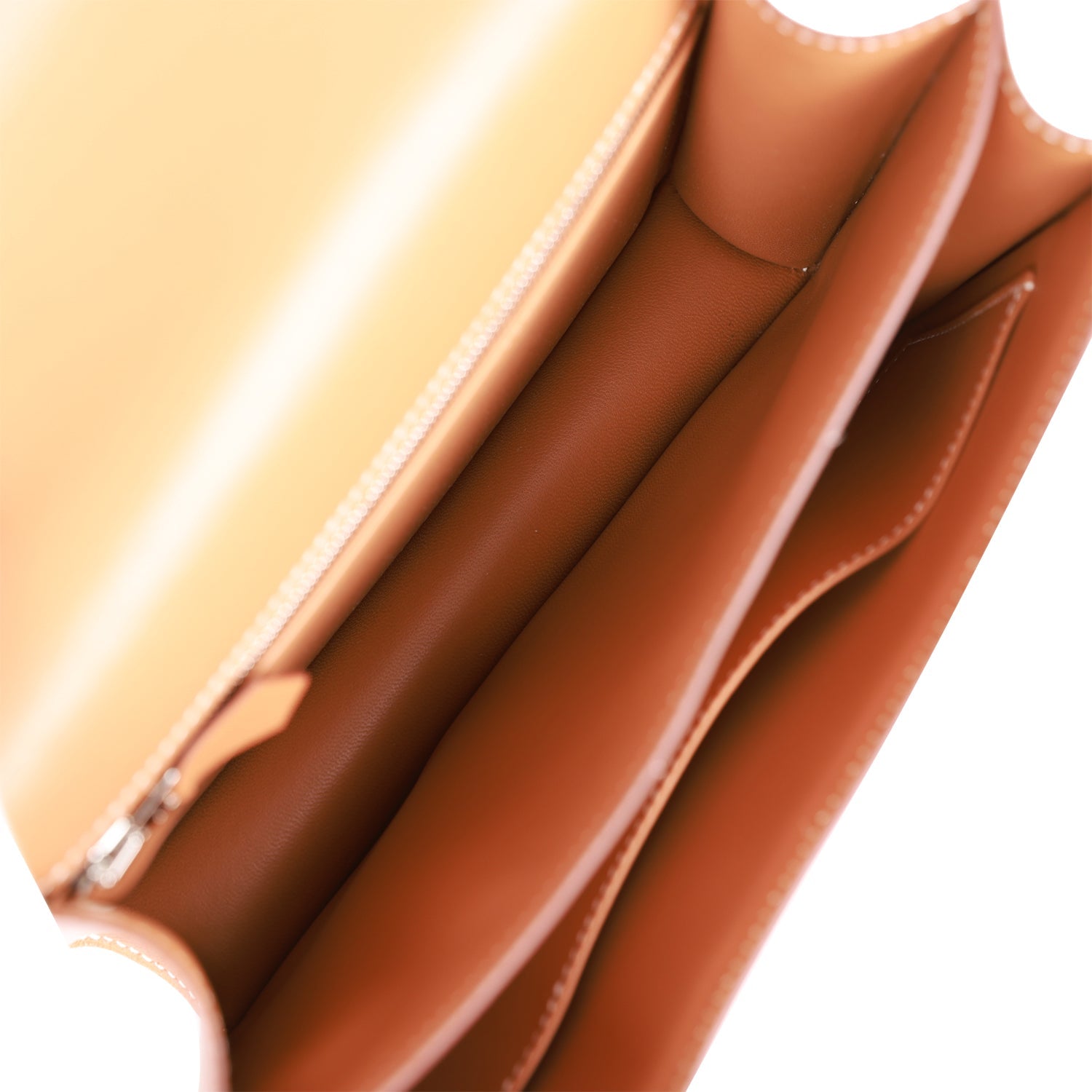 This Constance is in Gold madame leather with palladium hardware and has tonal stitching, an ombre Lizard "H" snap lock closure, and adjustable shoulder strap.