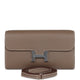 This Constance Wallet To Go is in Etoupe evercolor leather with palladium hardware and has contrast stitching, metal "H" snap lock closure, open front compartment and removable crossbody strap.