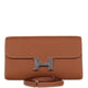 This Constance Wallet To Go is in Gold evercolor leather with palladium hardware and has contrast stitching, metal "H" snap lock closure, open front compartment and removable crossbody strap.