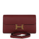 This Constance Wallet To Go is in Rouge H epsom leather with gold hardware and has tonal stitching, metal "H" snap lock closure, open front compartment and removable crossbody strap.