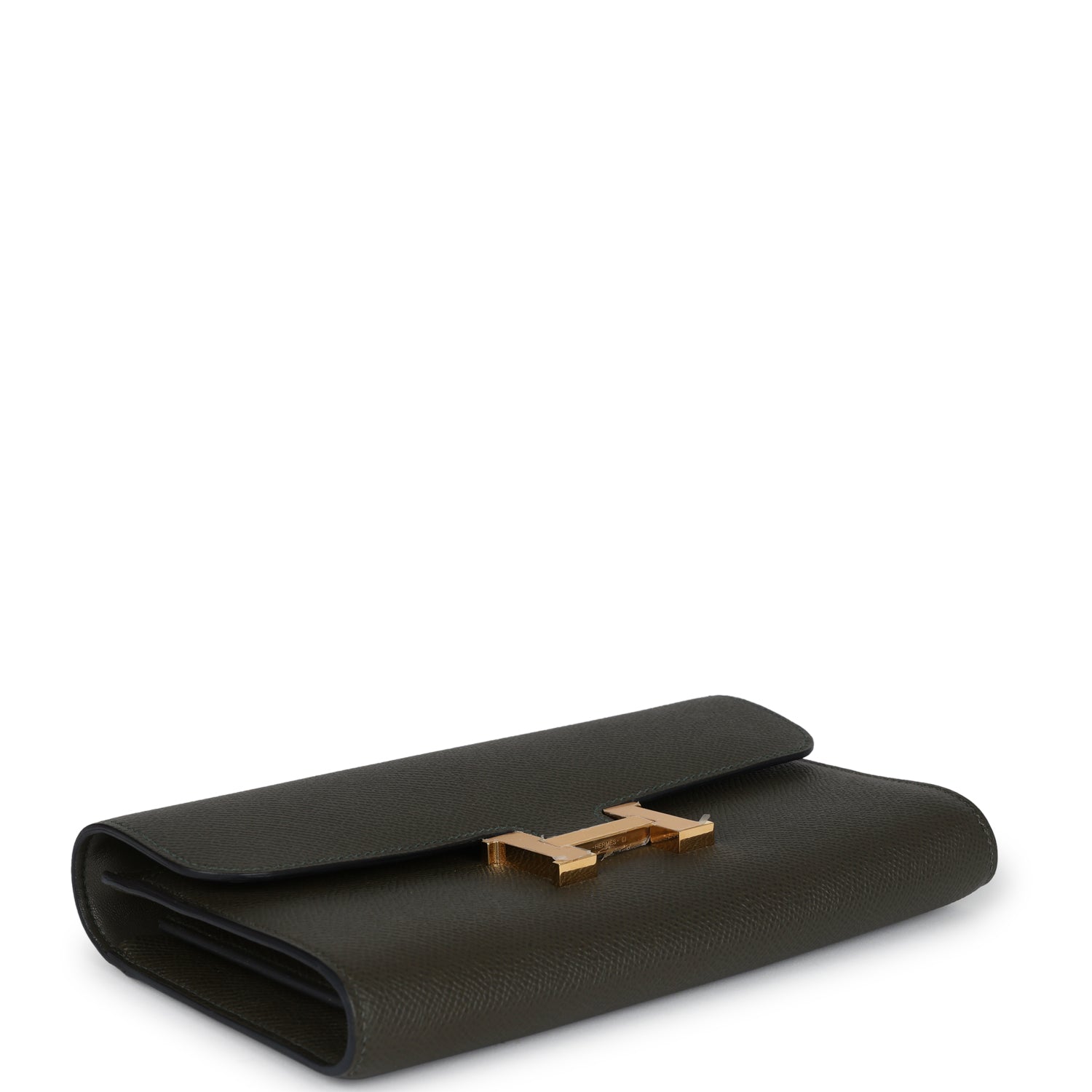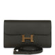 This Constance Wallet To Go is in Vert De Gris epsom leather with gold hardware and has tonal stitching, metal "H" snap lock closure, open front compartment and removable crossbody strap.
