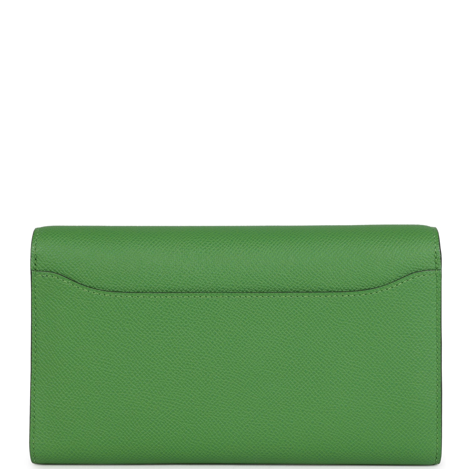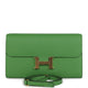 This Constance Wallet To Go is in Vert Yucca epsom leather with gold hardware and has tonal stitching, metal "H" snap lock closure, open front compartment and two removable crossbody straps.