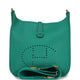 This Evelyne is of Vert Jade clemence leather with gold hardware and has tonal stitching, a pull tab top closure, and a removable Vert Jade canvas and leather shoulder/crossbody strap.