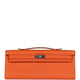 This Kelly Cut is in Orange swift leather with palladium hardware and has tonal stitching, two straps with front toggle closure and a top flat handle.