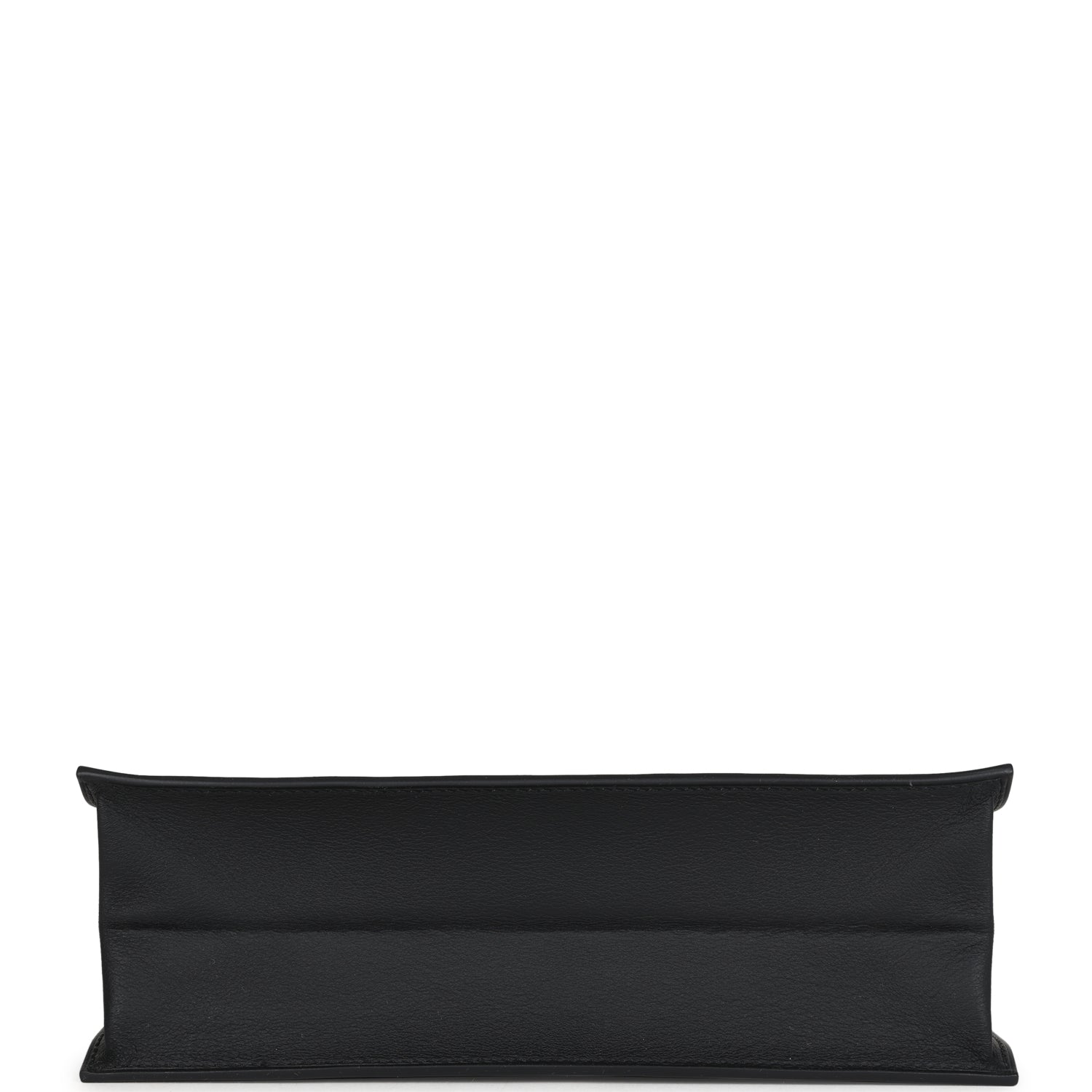 The interior is lined with Black lambskin and has a removable stamped base and an open wall pocket.