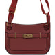 This Mini Jypsiere bag Rouge H swift leather with gold hardware, tonal stitching, single flap, two pull straps, turnlock closure, and a flat wool shoulder strap.