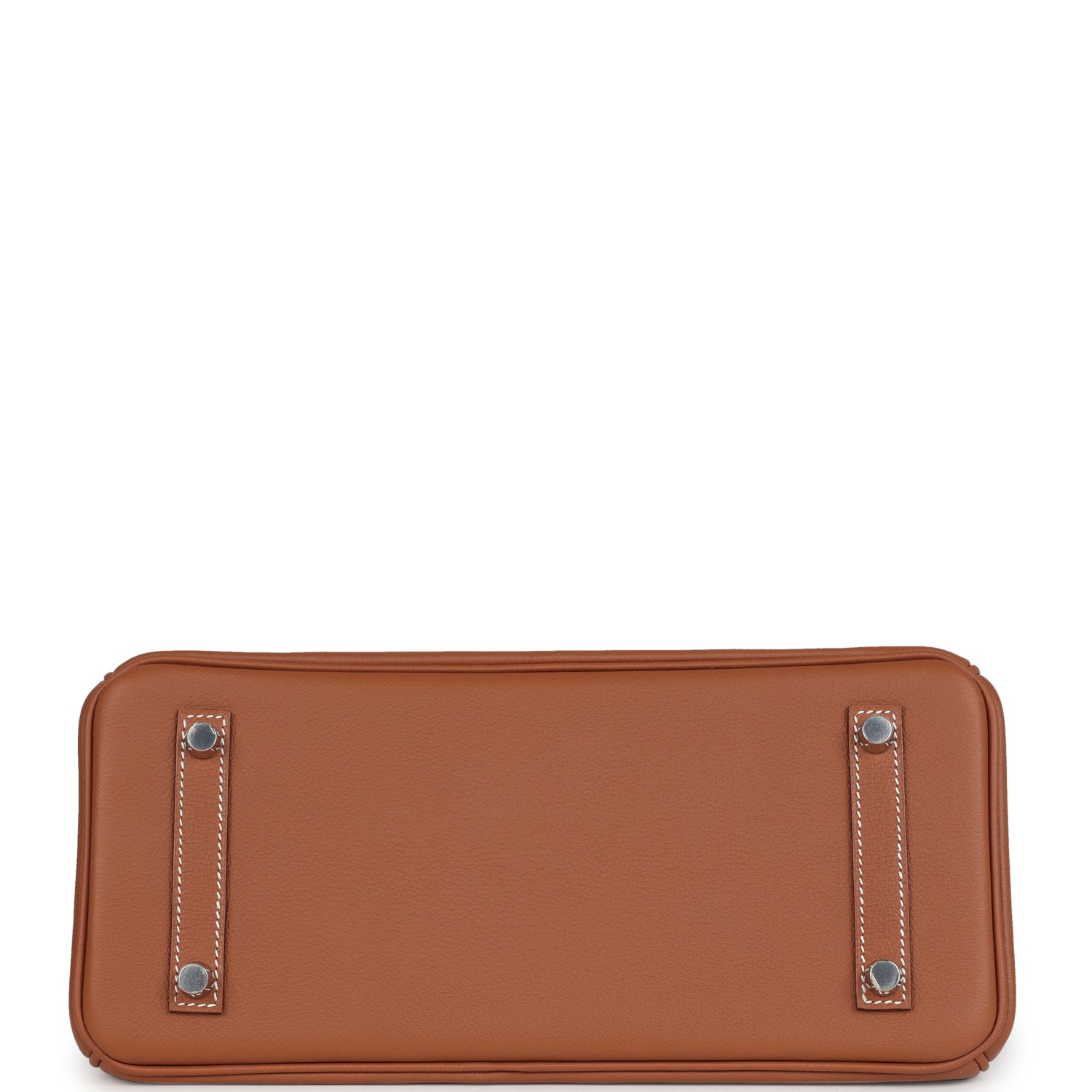 This Shoulder Birkin Light 29 is in Gold evercolor leather with palladium hardware and has contrast stitching, two straps with front toggle closure, clochette with lock and two keys and double rolled handles.