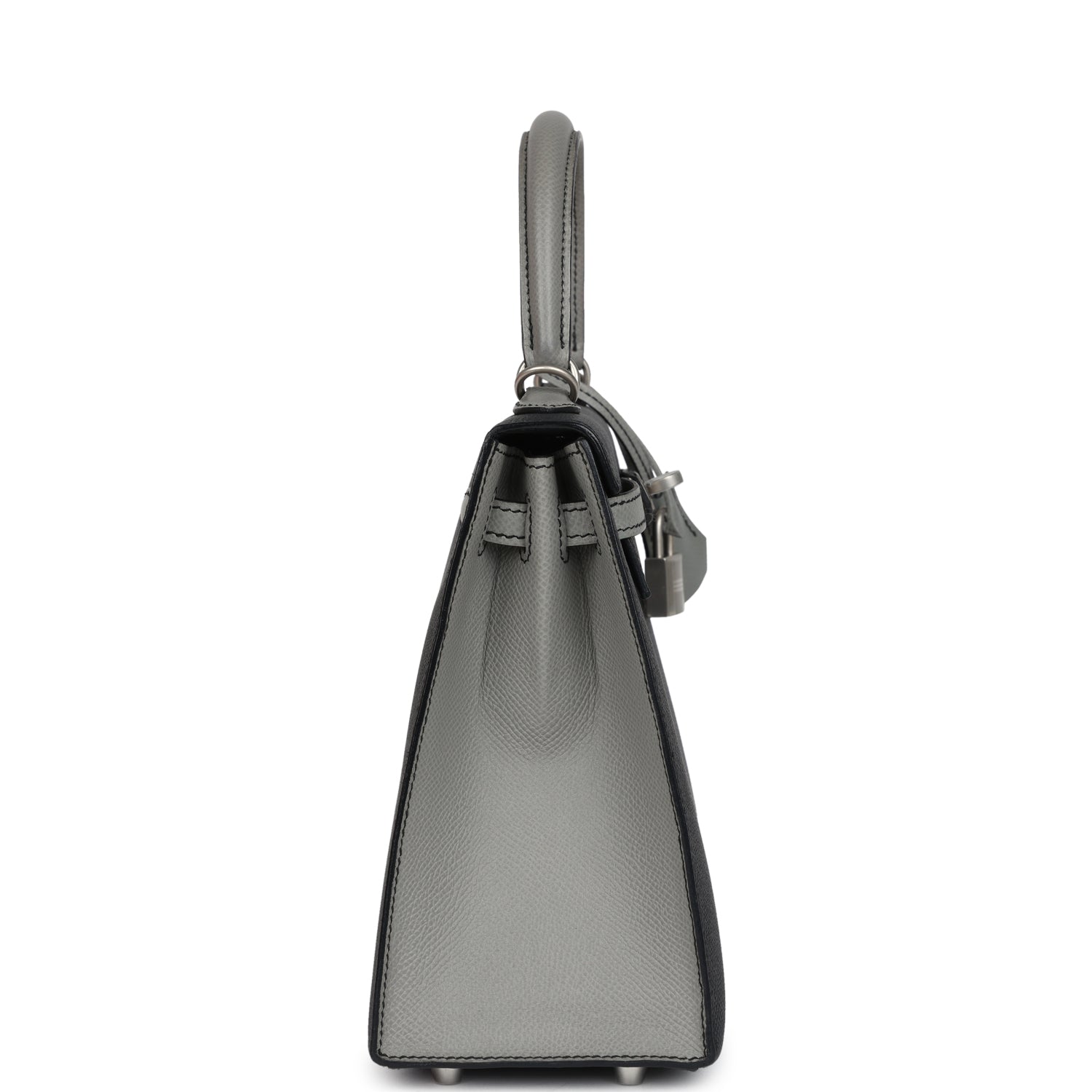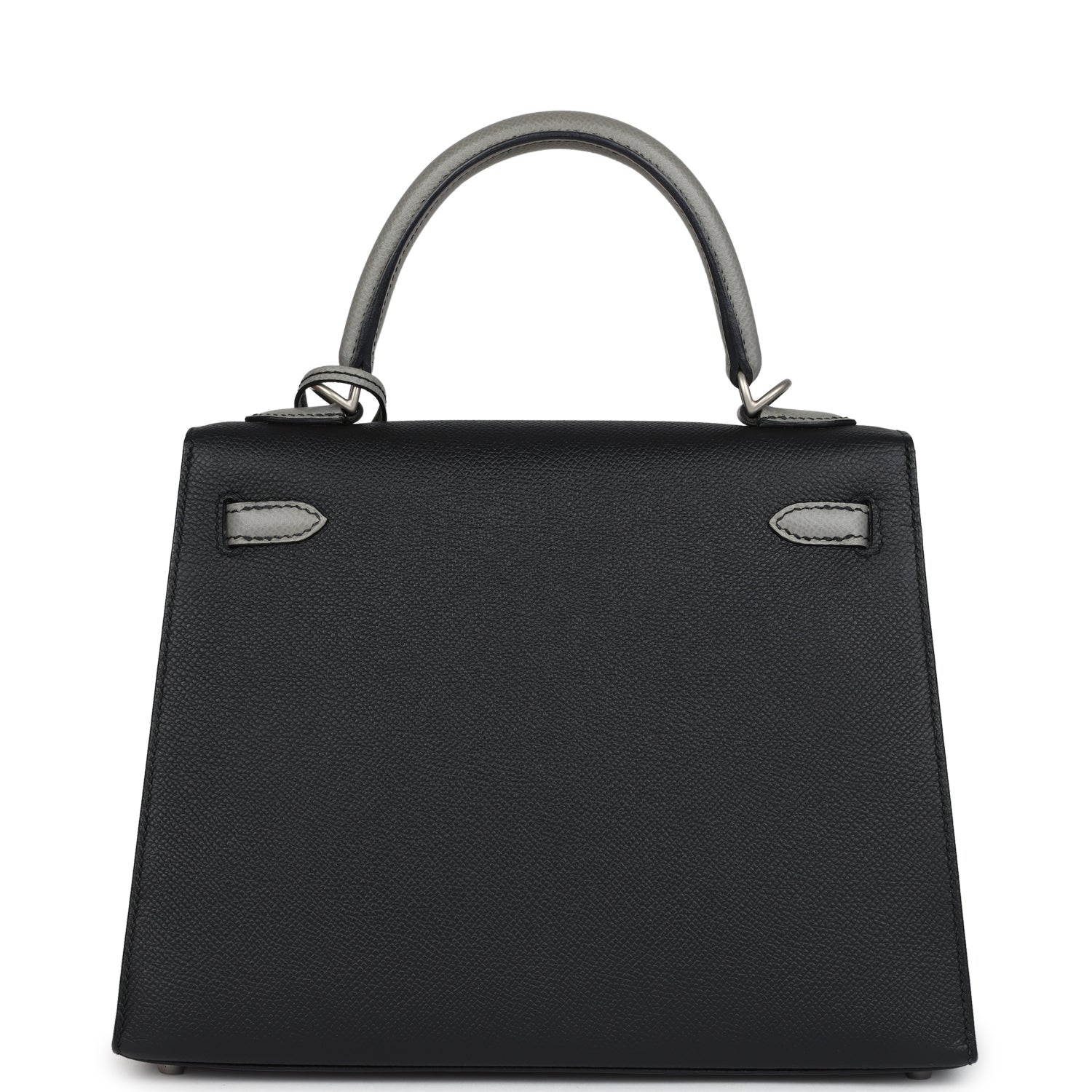 Special Order (HSS) Kelly Sellier 25 Black and Gris Mouette Epsom Brushed Gold Hardware