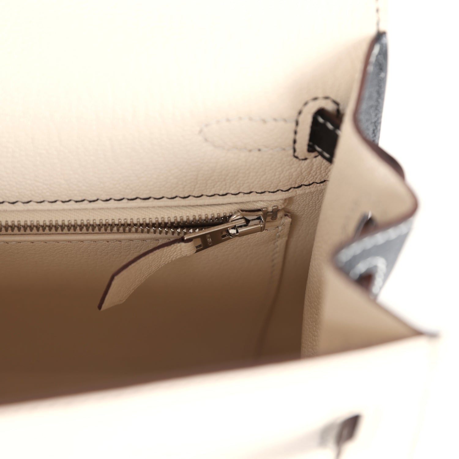 Special Order (HSS) Kelly Sellier 25 Nata and Black Chevre Mysore Brushed Palladium Hardware