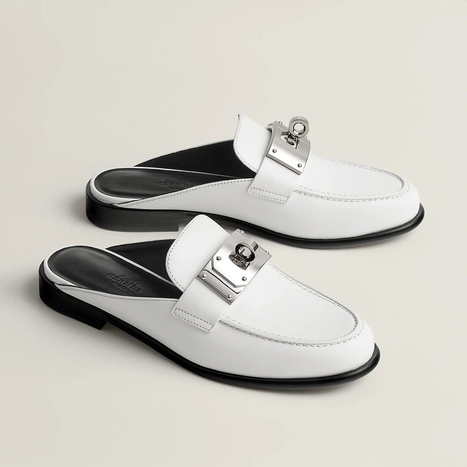 An elusive icon, the Kelly buckle always appears where it's not expected. It slips freely from a bag to a shoe, repeatedly featured on boots, mules, loafers or sandals. Whether in gold, platinum, metal, or leather, in mini or maxi formats, it's available in multiple styles for an endless number of bold looks.