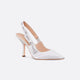 The J'Adior slingback pump is a prime example of Dior's savoir-faire. The elegant stand-out style is crafted in white embroidered cotton and silver-tone strass displaying a graphic and modern motif. The strass J'Adior ribbon, bow and 9.5-cm (3.5-inch) white lambskin comma heel complete the refined creation.