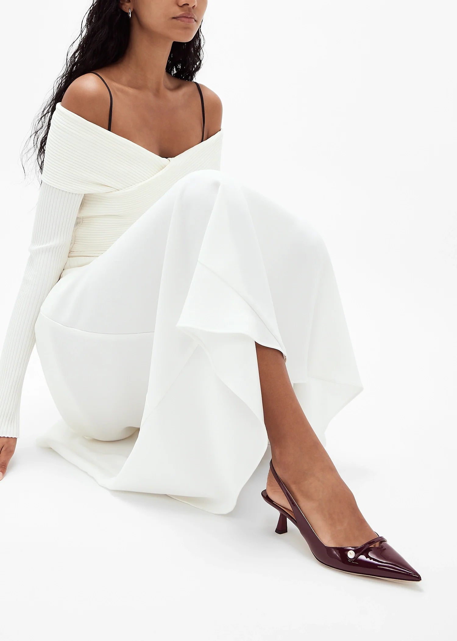 Italian-crafted from glossy patent leather, Jimmy Choo's Amita 45 pumps are here to make a chic and statement-making finishing touch to your look. Detailed with a JC pearl, they're completed with a pointed toe, an easy-to-wear low heel and an elasticated slingback strap.