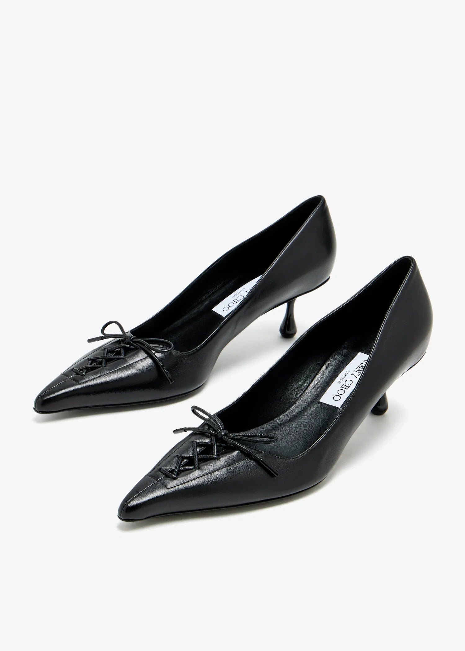 Up your style game with these Scarlett 50 pumps from Jimmy Choo. We adore the sharp toe with hand-threaded corset detailing and glossy Drop heel in an easy-to-wear kitten height. Style with everything from workwear to party dresses.