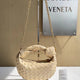 A chic mini hobo bag featuring an intricate knot handle design and bold gold chain strap. The woven texture and curved form deliver modern elegance, while its compact size makes it the perfect companion for day or night looks.
