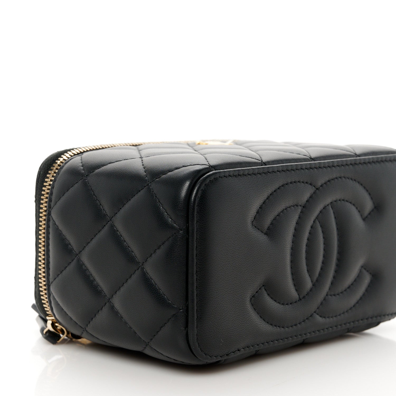 Lambskin Quilted Pearl Crush Small Vanity Case With Chain Black