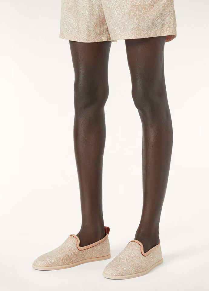 Leather pull tab with diamond LP stamp on the back of the right shoe only.