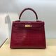 A luxurious and timeless Kelly Pochette crafted from premium alligator leather in a soft ivory hue.this bag embodies sophistication and exclusivity.