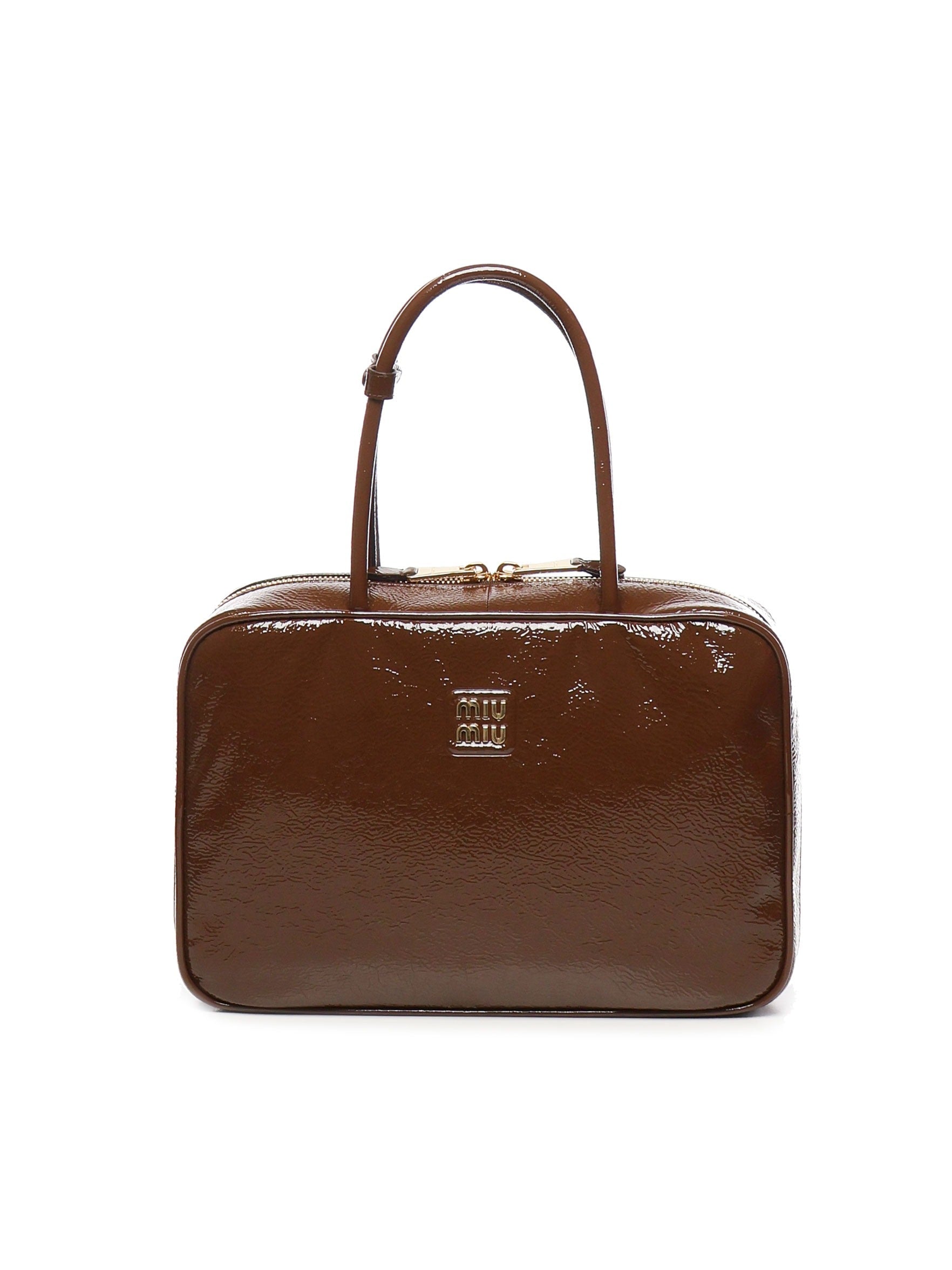 -Cotton satin interior with double zipper pocket -Metal lettering logo