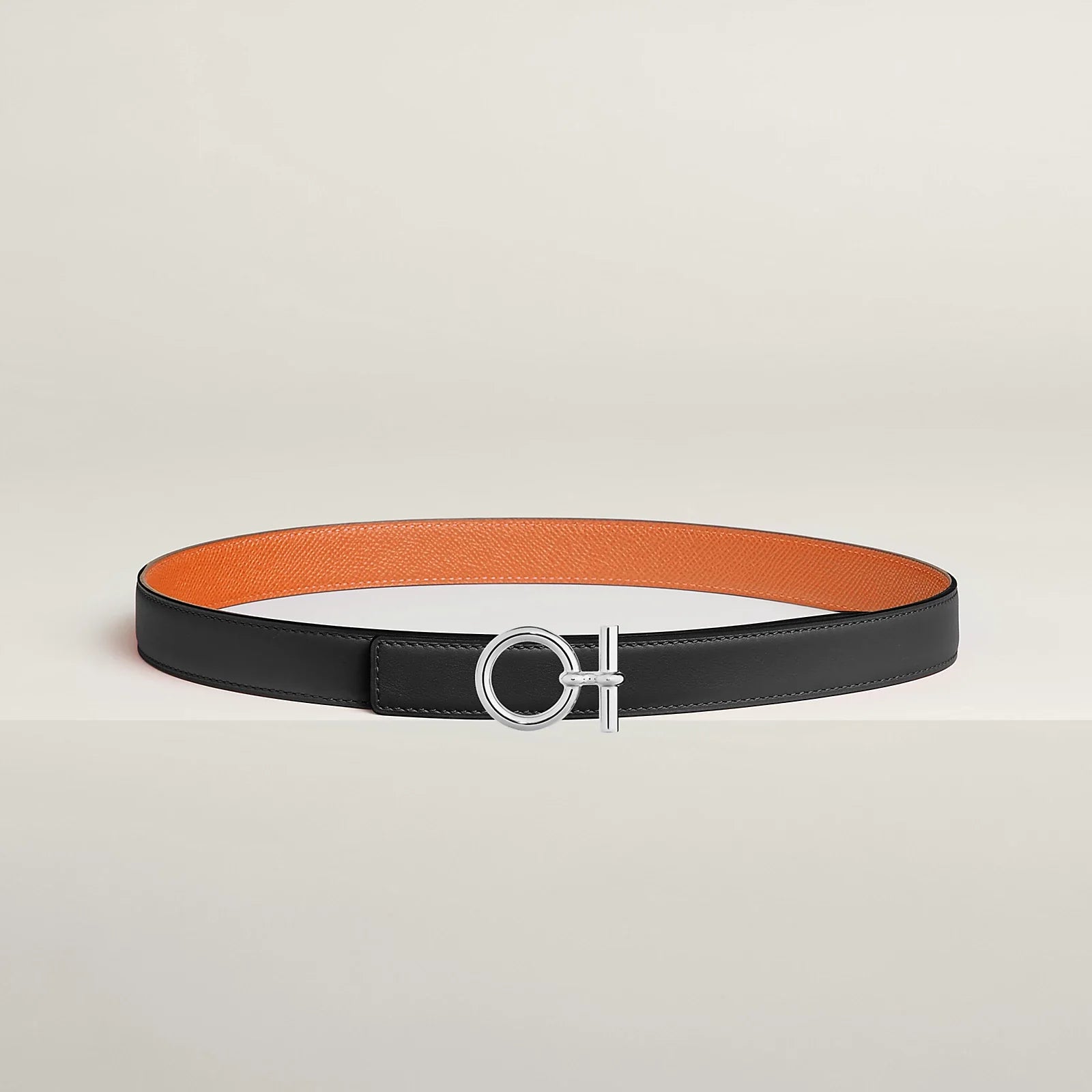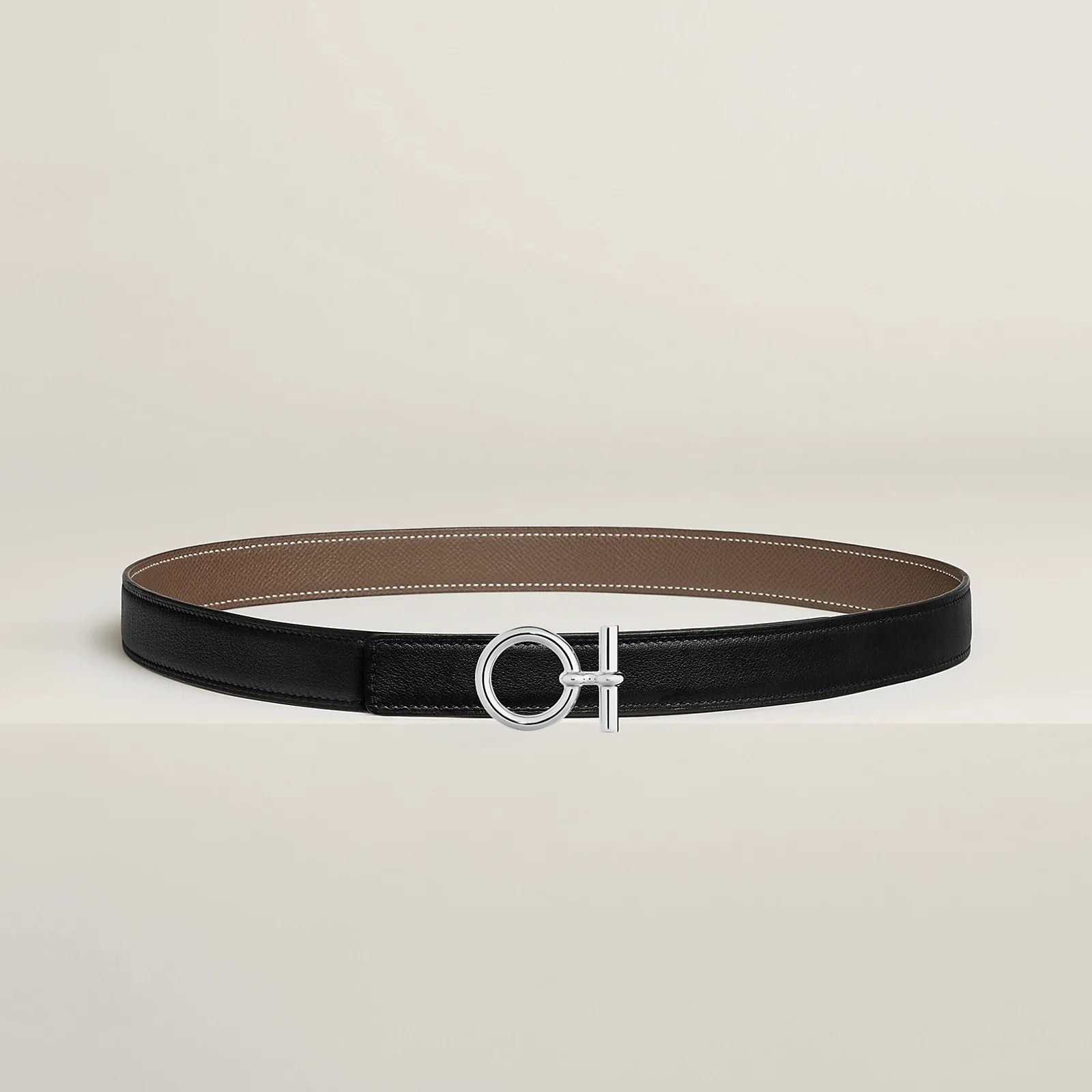 NOIR / GOLD -HAVANE / MAUVE PÂLE FLOT BELT BUCKLE & REVERSIBLE LEATHER STRAP 24 MM