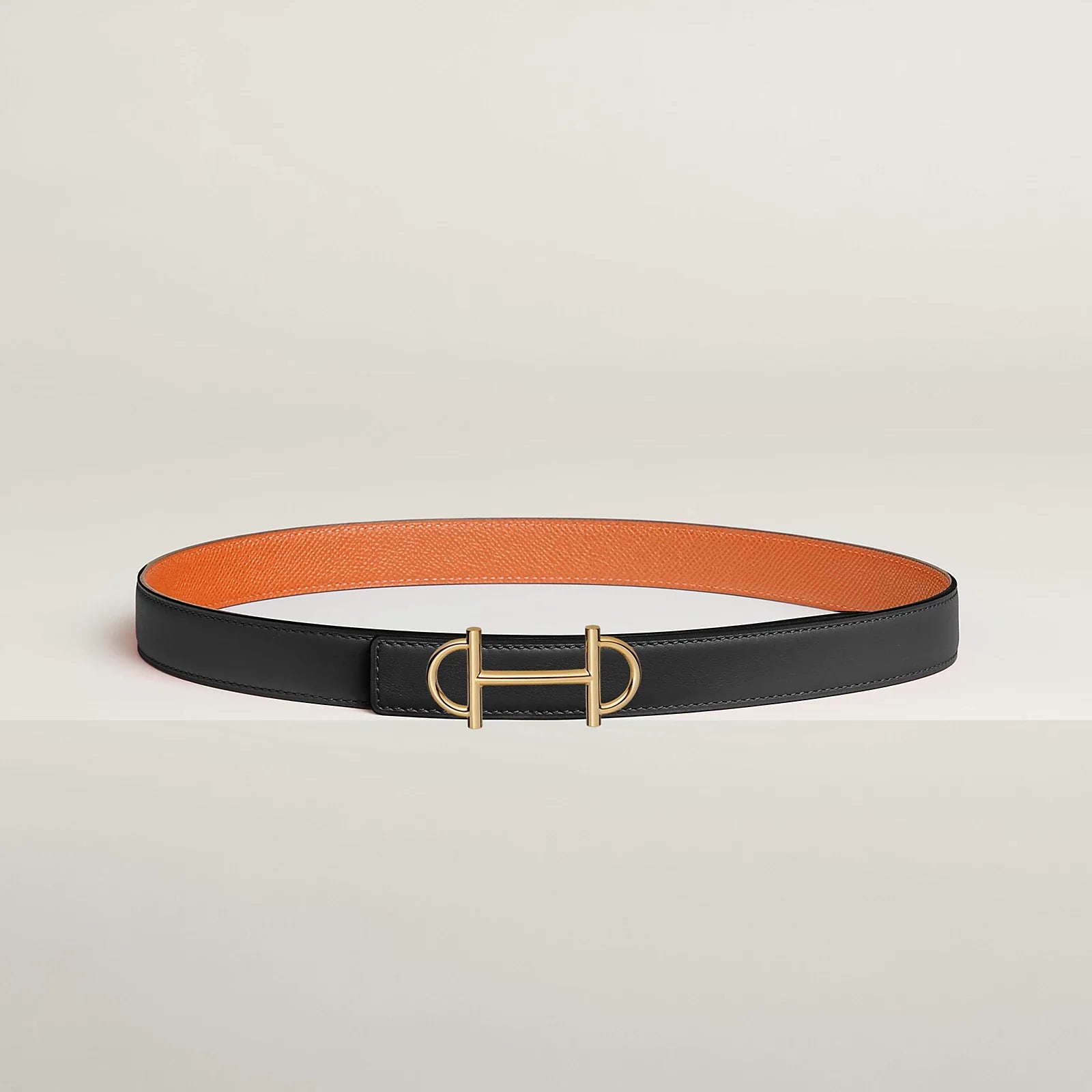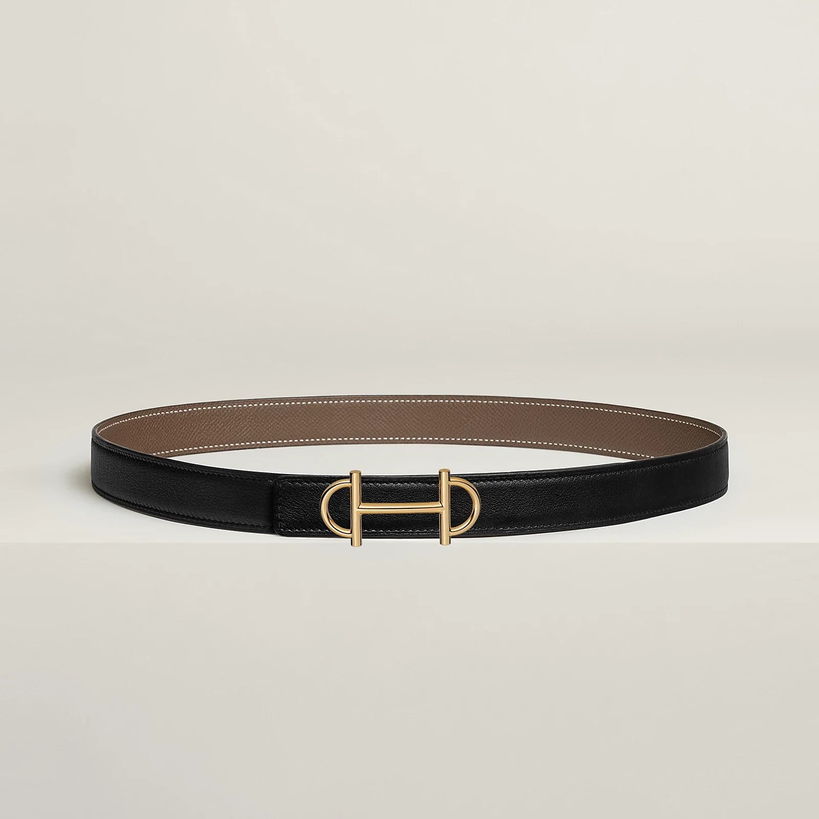 NOIR / GOLD-HAVANE / MAUVE PÂLE GAMMA BELT BUCKLE & REVERSIBLE LEATHER STRAP 24 MM