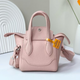 Compact and stylish blush pink handbag crafted from pebbled leather. ??