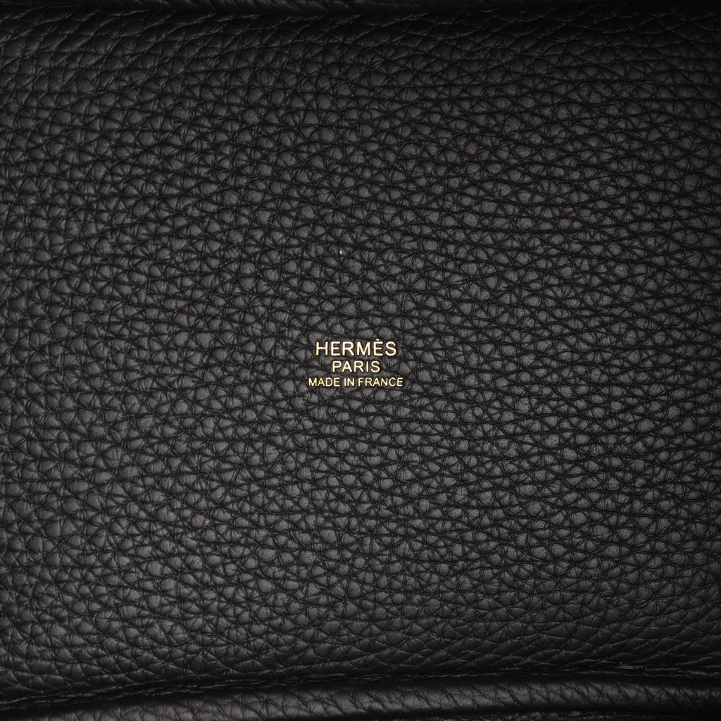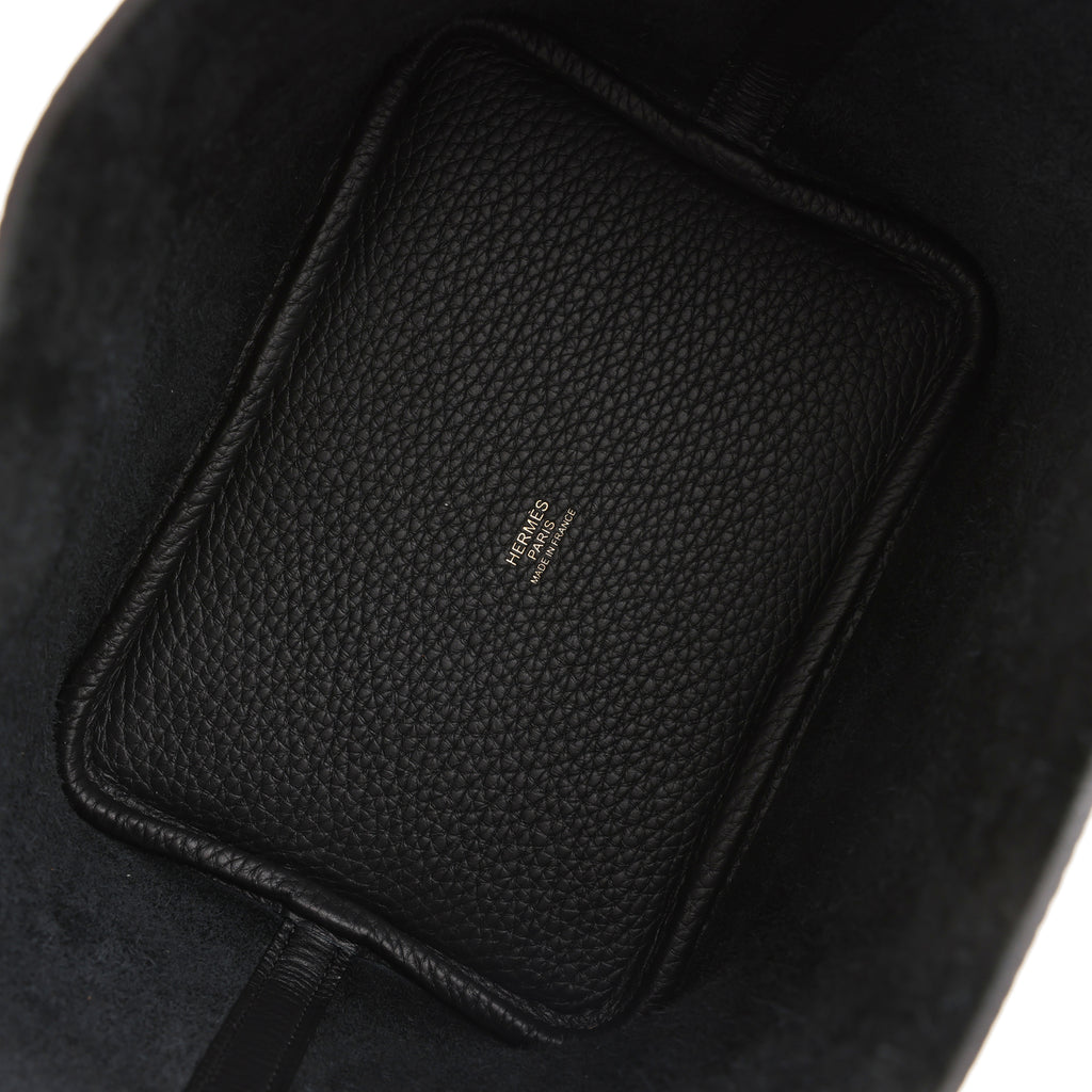 This Picotin Lock is in Black clemence leather with gold hardware and has tonal stitching with two top handles.