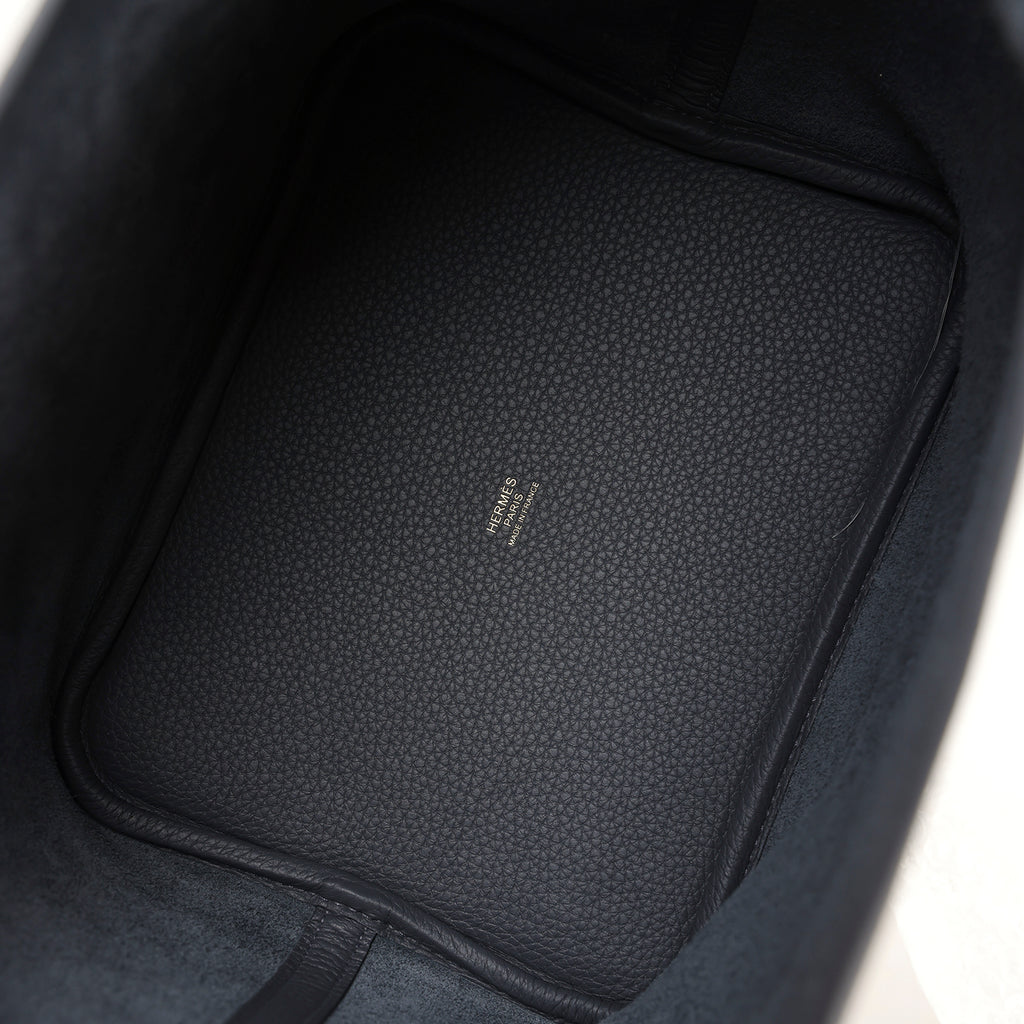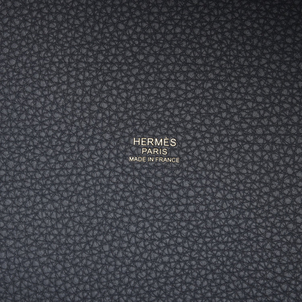 This Picotin is in Ardoise Clemence leather with permabrass hardware and has tonal stitching with two top handles.