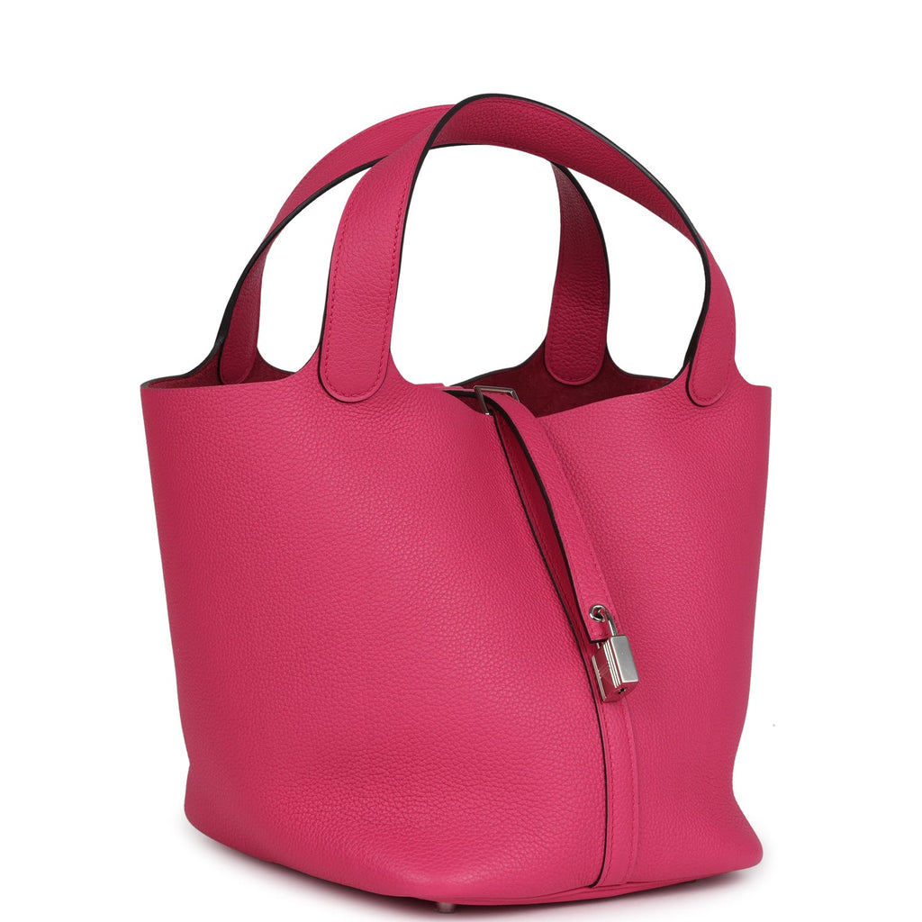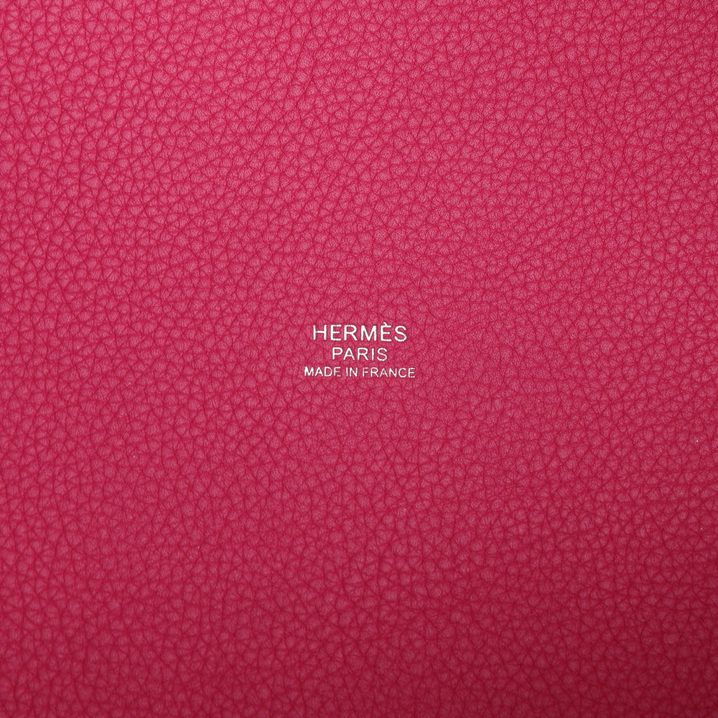 This Picotin is in Rose Shocking Maurice Taurillon leather with palladium hardware and has tonal stitching with two top handles.