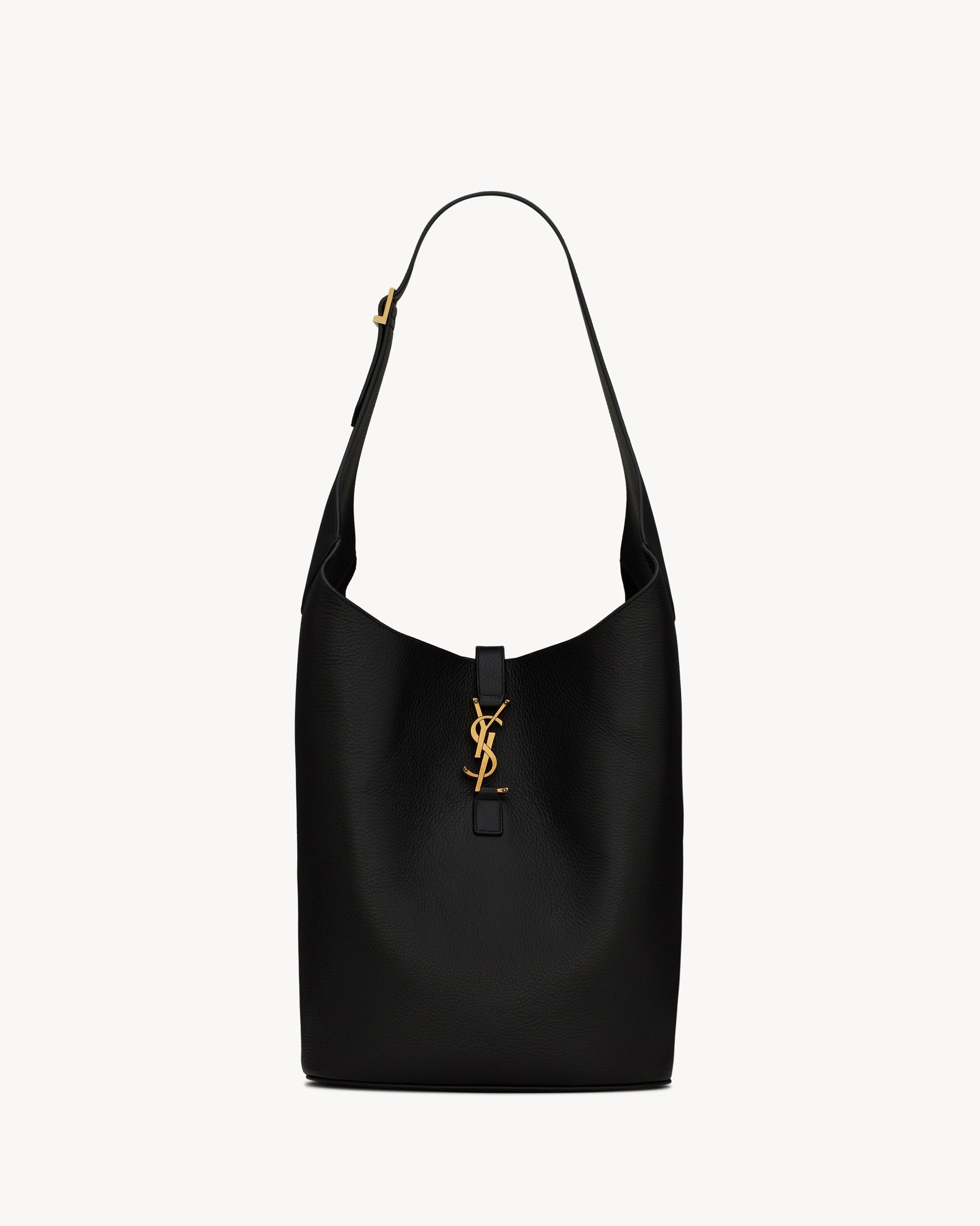 The hobo bucket version of the iconic LE 5 À 7 in finely grained leather, defined by its leather tab closure decorated with the CASSANDRE.