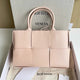 A statement tote crafted with bold oversized weaving in smooth leather, this bag combines structure with feminine elegance. Featuring rounded top handles and a spacious interior, it?€?s ideal for polished daily wear or graceful workday styling.