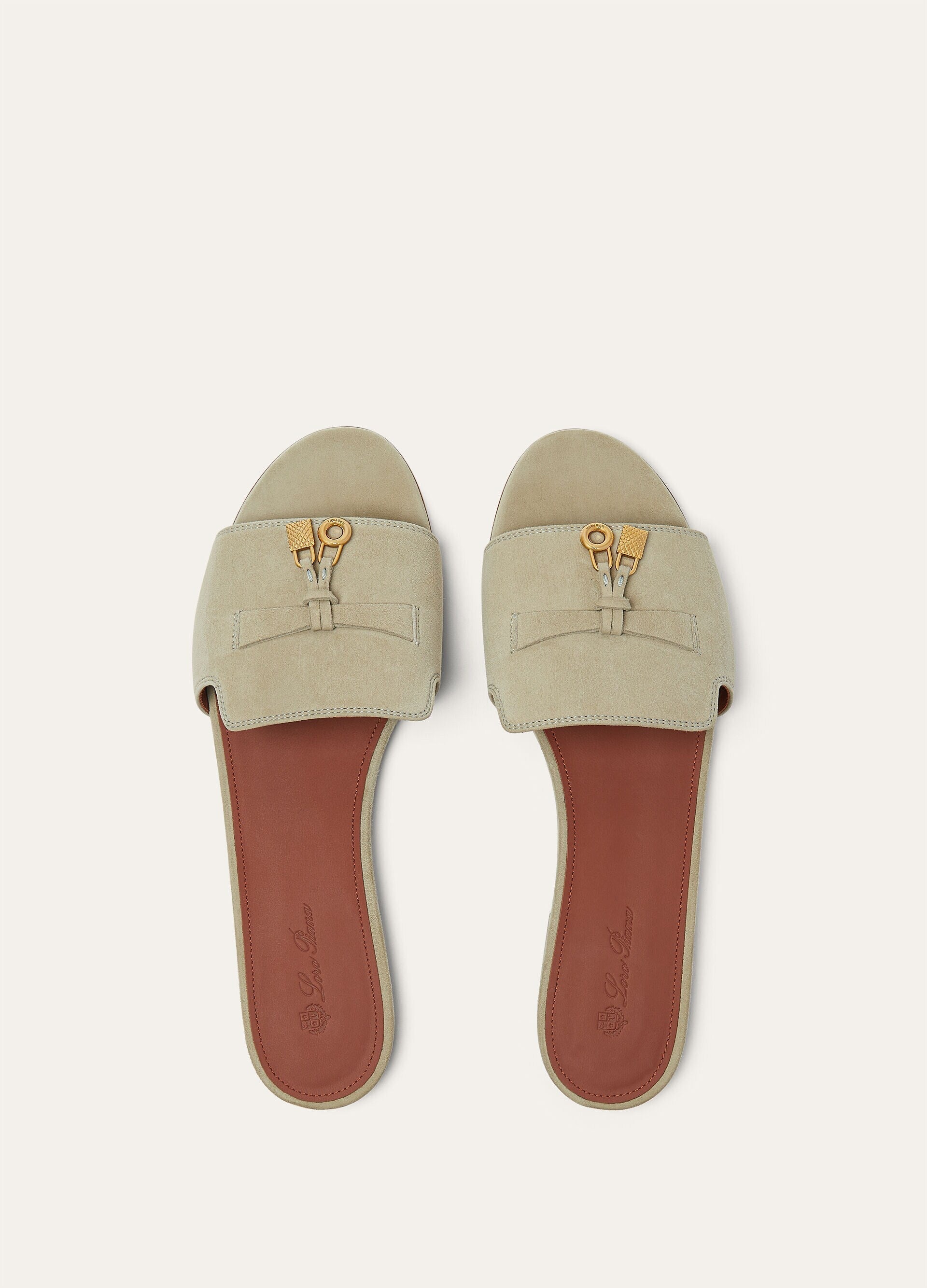 These flat suede sandals combine minimalist design with playful sophistication through the pretty My Charms detail. The open design creates an air of effortless elegance, perfect for exploring the city or strolling by the sea. The versatile nature complements everything from casual denim to flowing summer dresses.