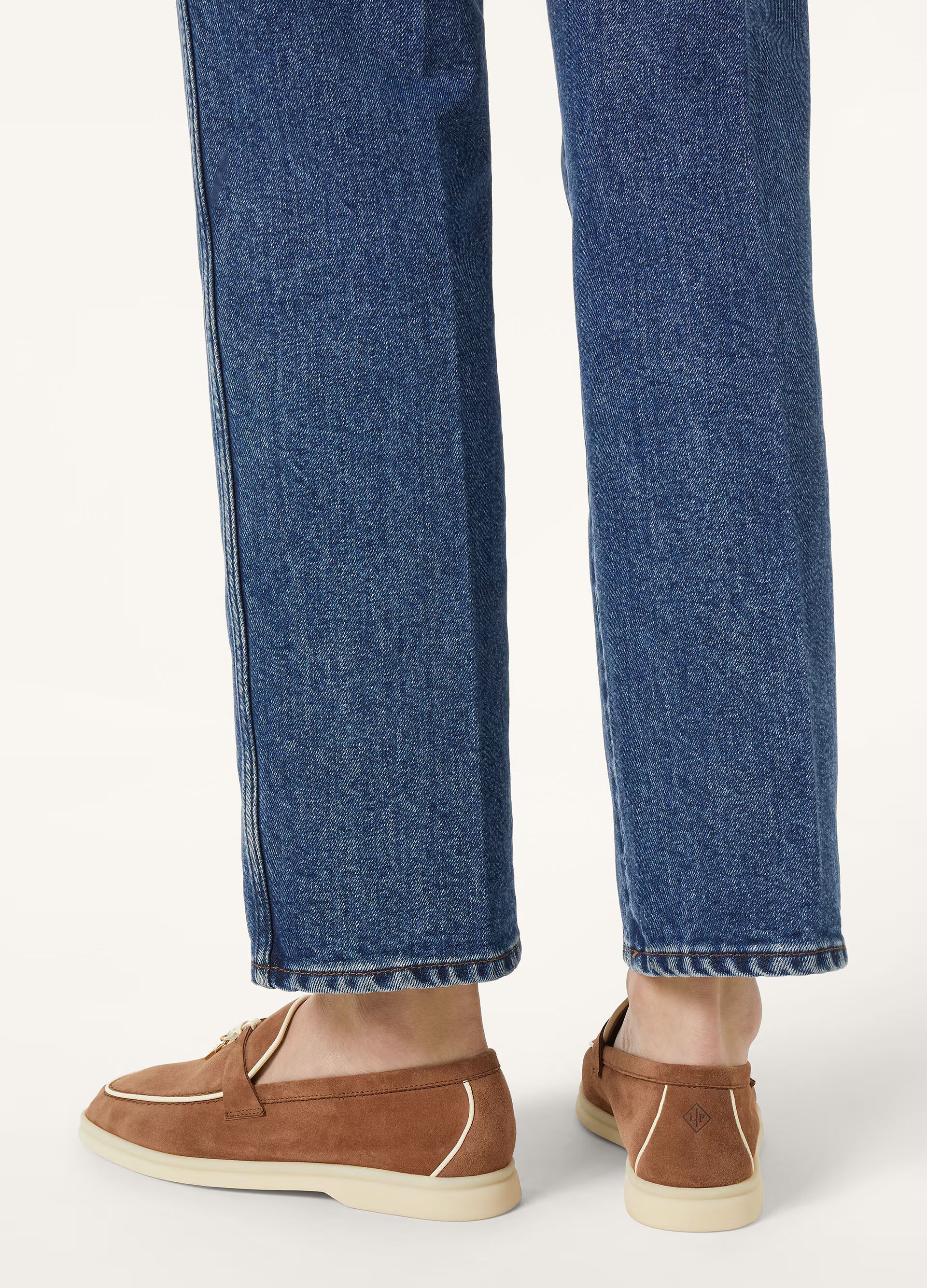 Iconic suede loafers. They feature soft nappa leather piping and suede saddles with Loro Piana My Charms.